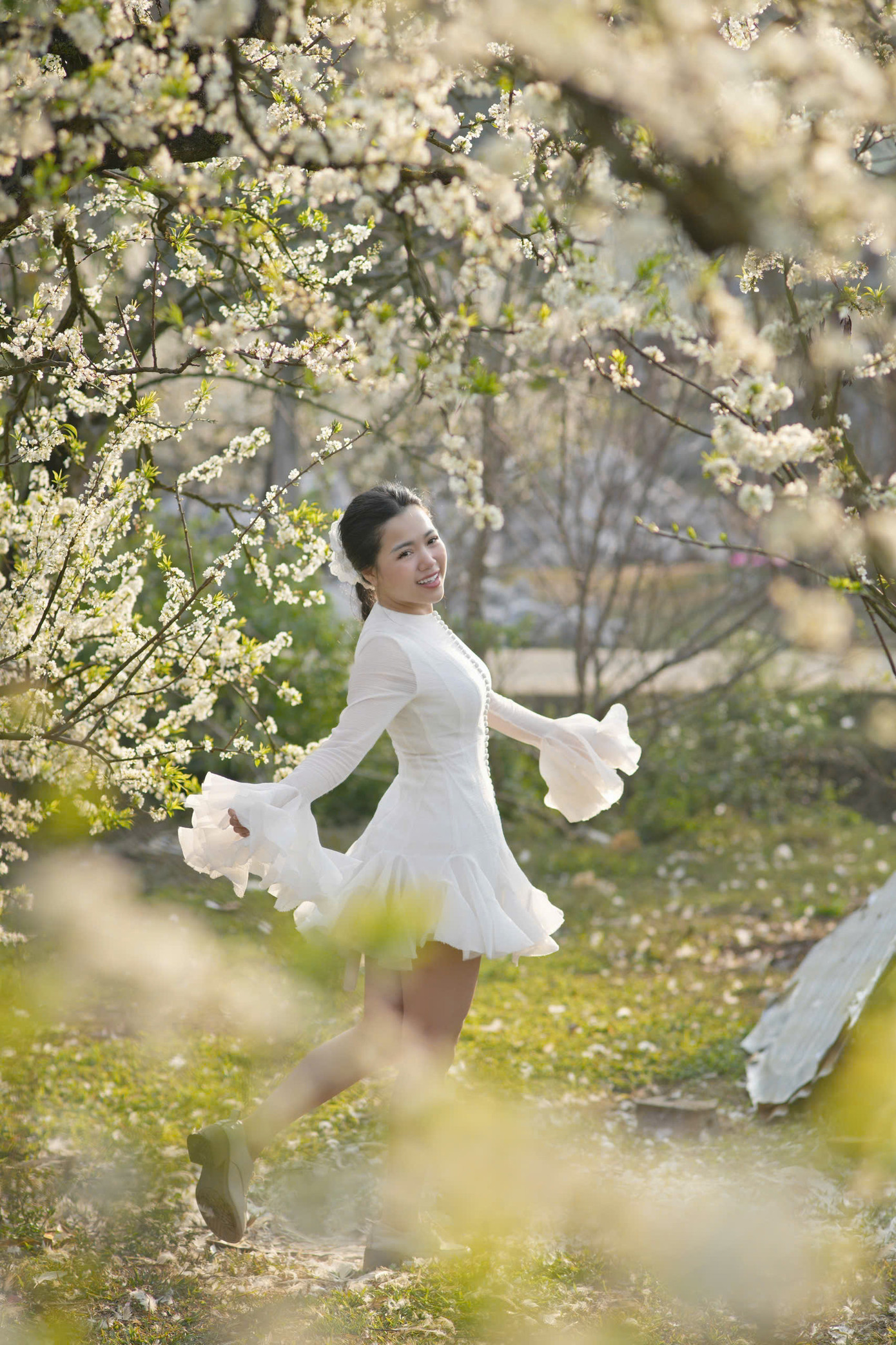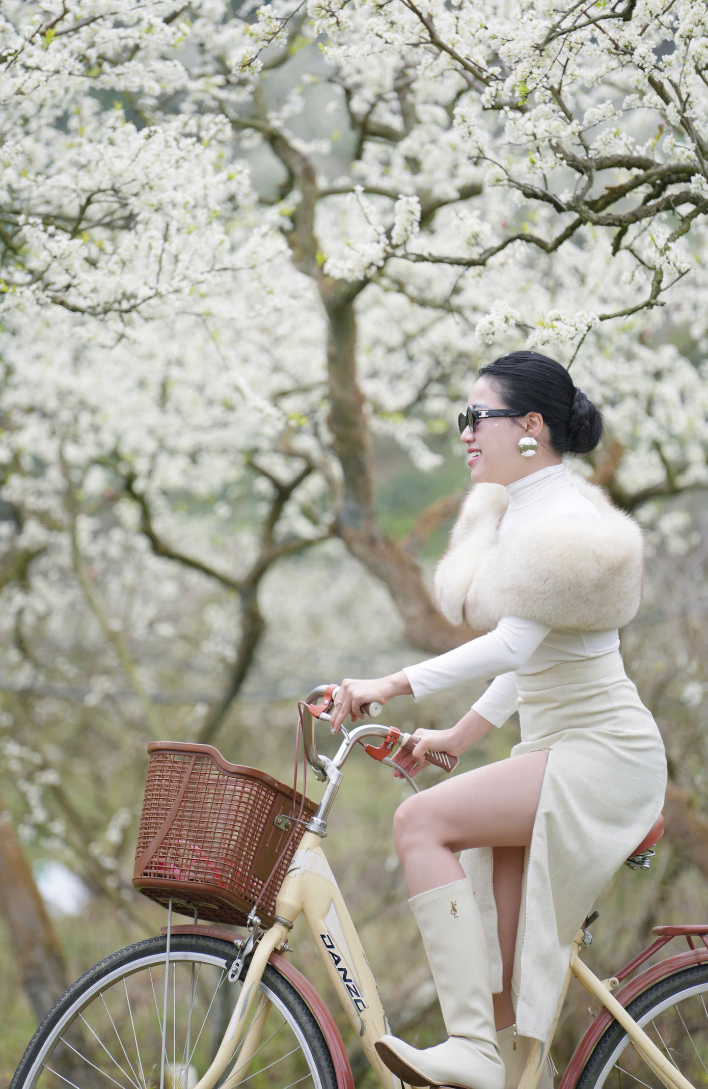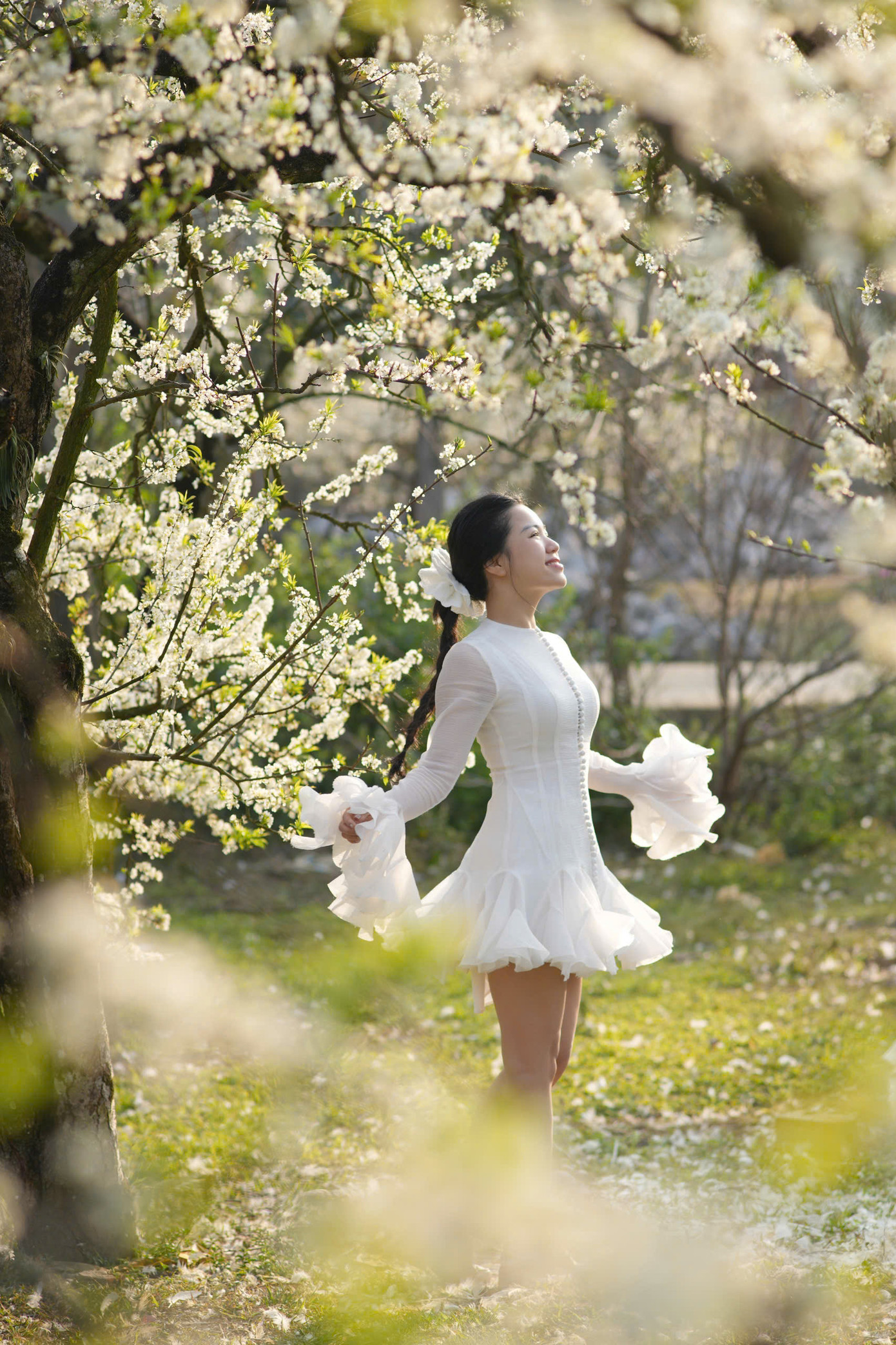 MC Đồng Thu, nữ MC duyên dáng của Đài Truyền hình Việt Nam, đã chọn thời điểm đẹp nhất của mùa hoa mận để thực hiện bộ ảnh kỷ niệm.
