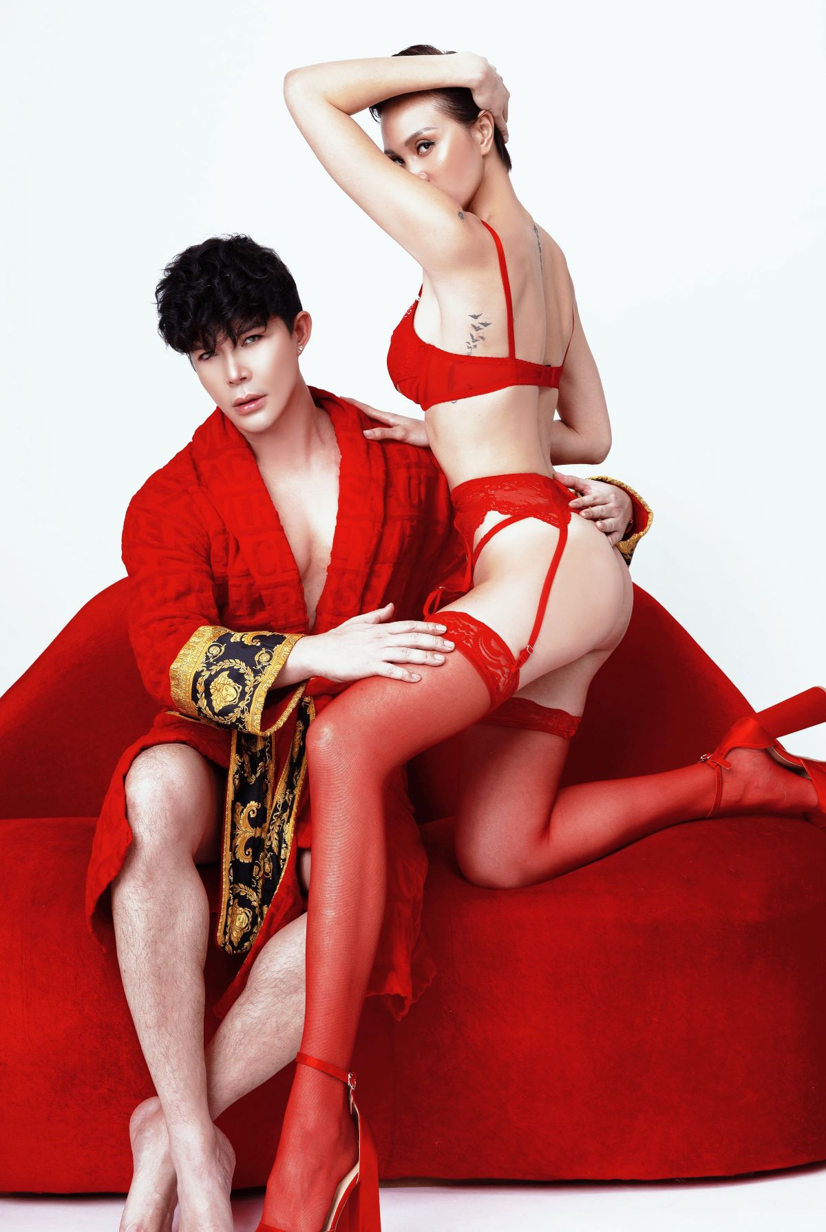 Trong bộ ảnh, Nathan Lee và MC Phương Mai diện trang phục màu đỏ viền vàng đầy quyền quý, thần thái toát lên khí chất ngời ngời. Tâm điểm của loạt ảnh là khoảnh khắc Nathan Lee đặt bàn tay hờ hững lên những đường cong của MC Phương Mai, ánh mắt đầy tình tứ. Đi kèm với bộ ảnh, Nathan Lee cũng “úp mở” về một sự kiện với quy mô lớn sẽ được tổ chức vào Valentine năm nay.