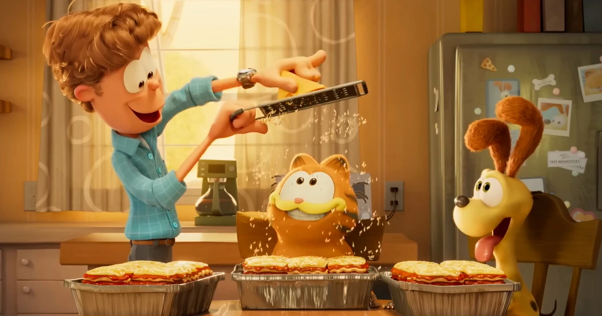 Giữ đúng tinh thần vốn có của thương hiệu, nhà sản xuất dự án lần này không đan cài tình tiết khó đoán, phức tạp vào phim. Tính đồ sộ về cốt truyện và tuyến nhân vật của The Garfield Movie cũng không bằng những tác phẩm cùng thể loại khác, điển hình như siêu phẩm hoạt hình Mèo Đi Hia 2. Thay vào đó, The Garfield Movie có kịch bản đơn giản, gần gũi nhưng vẫn đảm bảo được các yếu tố gây cười.