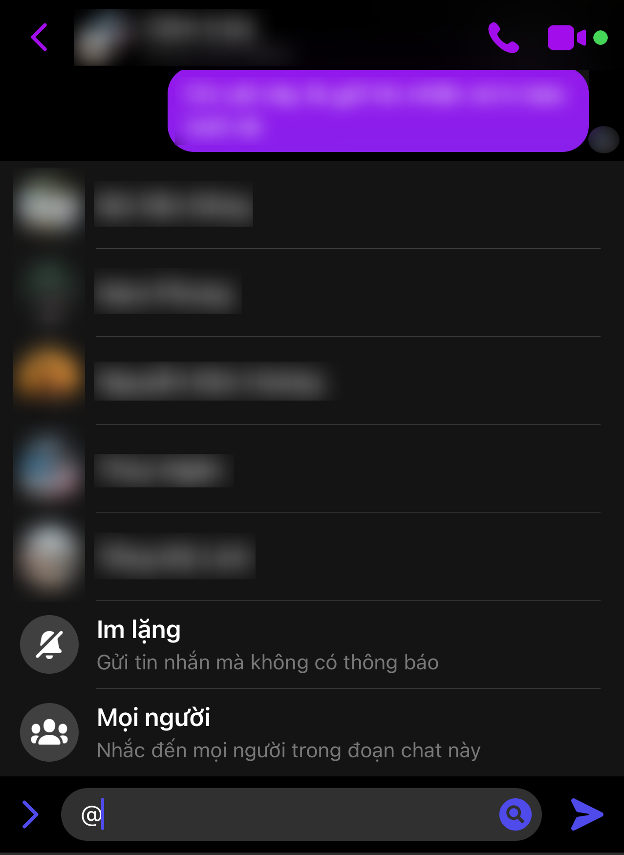 Bước 2: Sau khi cập nhật phiên bản mới thành công thì bạn có thể vào một nhóm chat bất kì mà bạn cần tag mọi người hay gửi tin nhắn không hiện thông báo tới người nhận.
