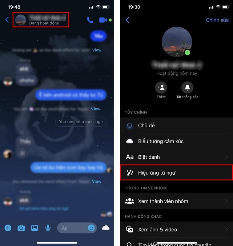 Bước 2: Bạn mở tin nhắn Messenger, vào Cài đặt tin nhắn > Hiệu ứng từ ngữ.