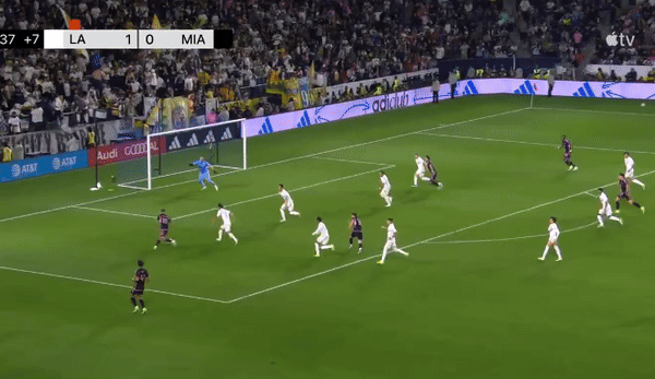 Inter Miami phải làm khách và họ đã trải qua 45 phút nhọc nhằn trước đội chủ nhà LA Galaxy thi đấu hưng phấn, nhuần nhuyễn. Sức ép của Los Angeles Galaxy khiến Inter Miami phải chịu trận. Suốt hiệp đấu đầu tiên, họ chỉ tạo được 1 cơ hội nguy hiểm từ cú volley của Lionel Messi.