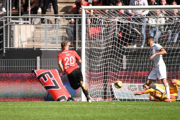 Khoảng 10 phút cuối hiệp 1, PSG tăng sức tấn công nhưng không thể tìm được bàn thắng dù cơ hội đã ở rất gần. Trái lại, đội chủ nhà bất ngờ tìm được bàn thắng sau tình huống băng vào dứt điểm của Gaetan Laborde. Đây là cầu thủ thứ hai trong lịch sử Ligue 1 ghi ít nhất 3 bàn với 2 CLB khác nhau trong một mùa giải (3 với Montpellier, 3 với Rennes).