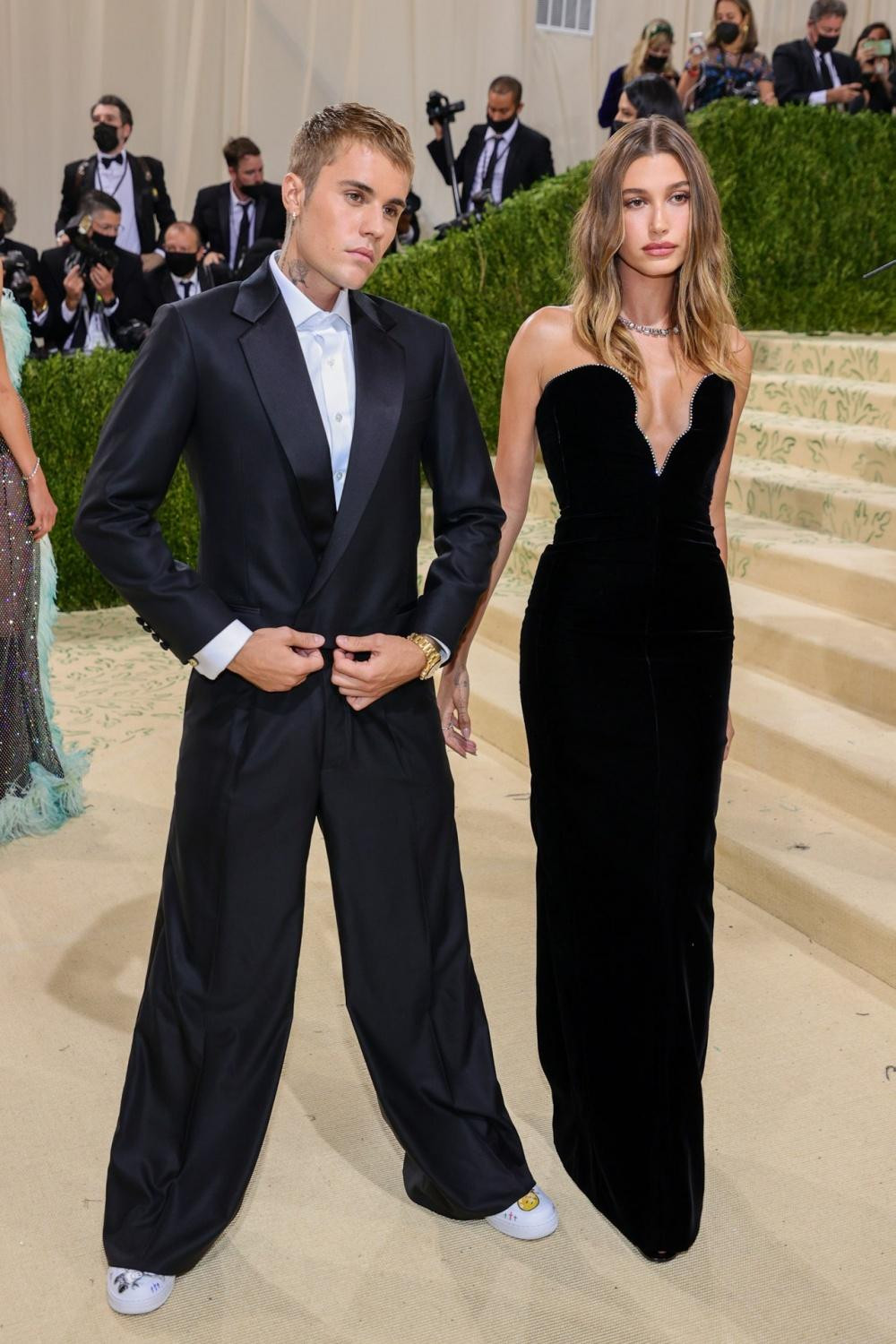 Vợ chồng Justin Bieber và Hailey Bieber, Hailey cũng mặc thiết kế của Saint Laurent.