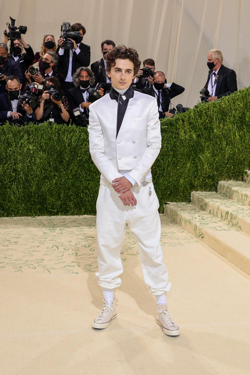 Một trong 4 vị host của Met Gala năm nay, nam diễn viên Timothée Chalamet xuất hiện sáng ngời như một chàng hoàng tử, anh mặc trang phục của nhà mốt Haider Ackermann.