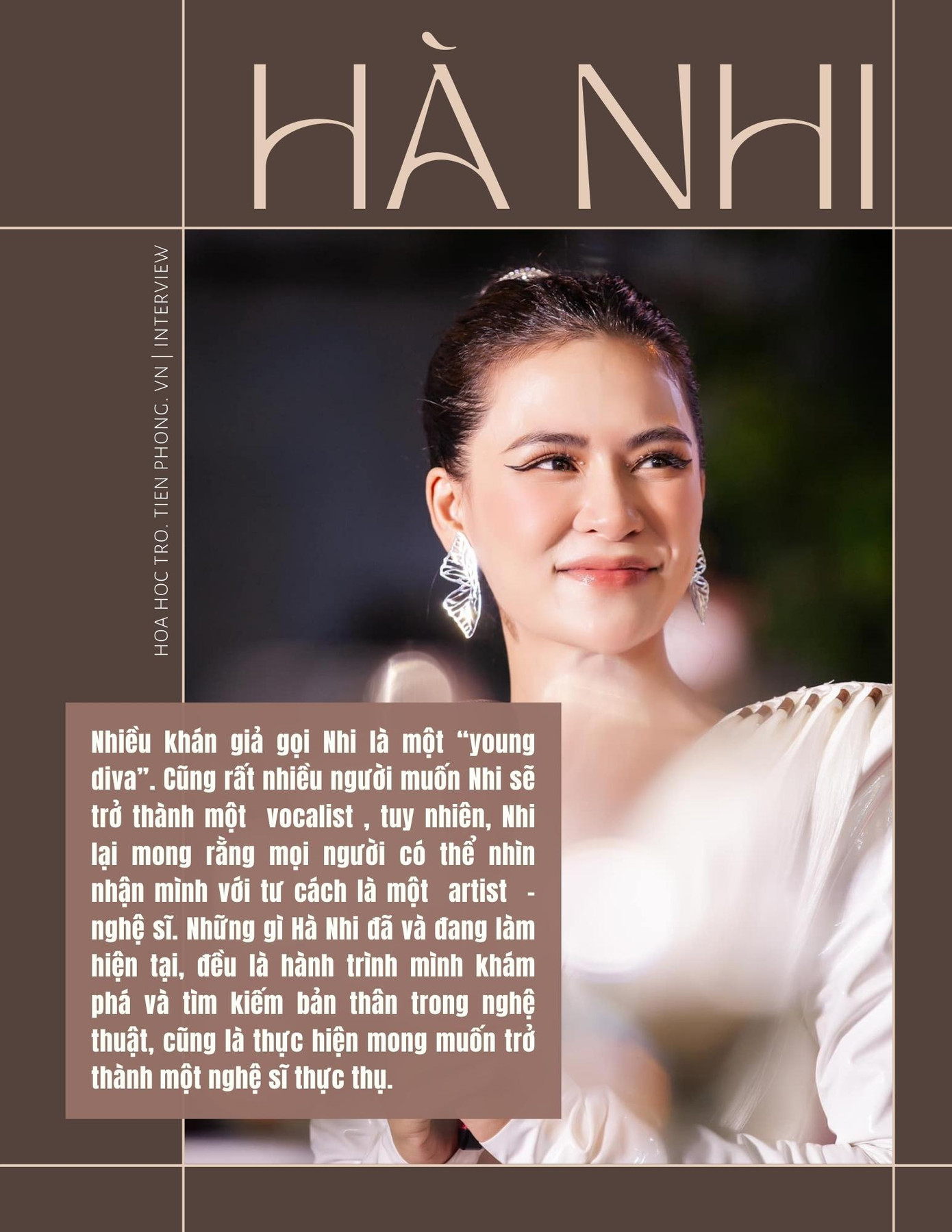 Nhiều khán giả gọi Nhi là một “young diva”. Cũng rất nhiều người muốn Nhi sẽ trở thành một vocalist, tuy nhiên, Nhi lại mong rằng mọi người có thể nhìn nhận mình với tư cách là một artist - nghệ sĩ. Hơn nữa, nếu nhìn Nhi ở trên sân khấu và khi trò chuyện với khán giả hay hát những ca khúc sôi động, mình thấy mình cũng rất “giải trí” ấy chứ! (cười)