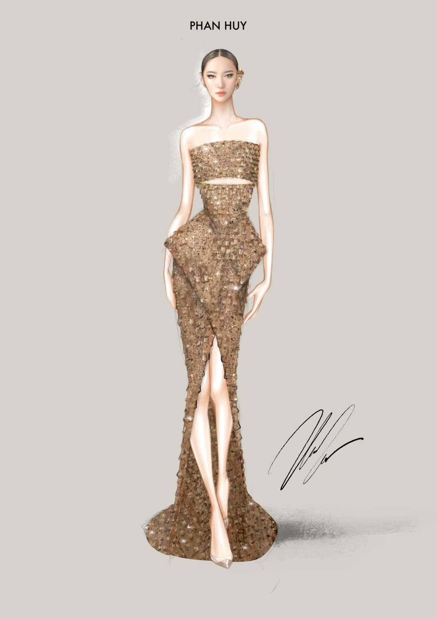 Chi Pu là nghệ sĩ tiếp theo xuất hiện cuốn hút tại thảm đỏ trong thiết kế của Phan Huy. Thiết kế đầm trễ vai xuyên thấu đính kim tuyến khoe trọn sắc vóc thon gọn của nữ nghệ sĩ.