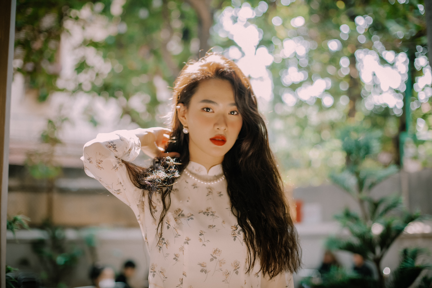 Trong bộ ảnh đón Tết 2022 lần này, Minh Trang khép lại một năm rực rỡ giữa lòng Sài Gòn bình yên và xinh đẹp. Với tính cách đơn giản, nhẹ nhàng, nữ diễn viên sinh năm 1995 diện các mẫu thiết kế áo dài màu xanh ngọc và trắng tinh khôi vừa đủ nổi bật nhưng không quá cầu kỳ.