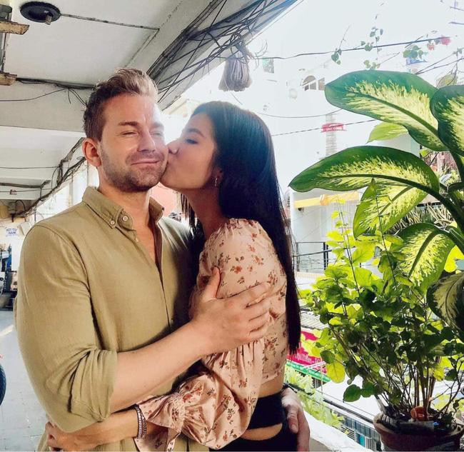 Trong ảnh, người đẹp dành một nụ hôn cực tình cảm cho bạn trai của mình và cả hai đang rất hạnh phúc bên nhau. Hành động thân mật này của cặp đôi khiến netizen vui mừng và đánh bay mọi hụt hẫng trước tin đồn cả hai chia tay.