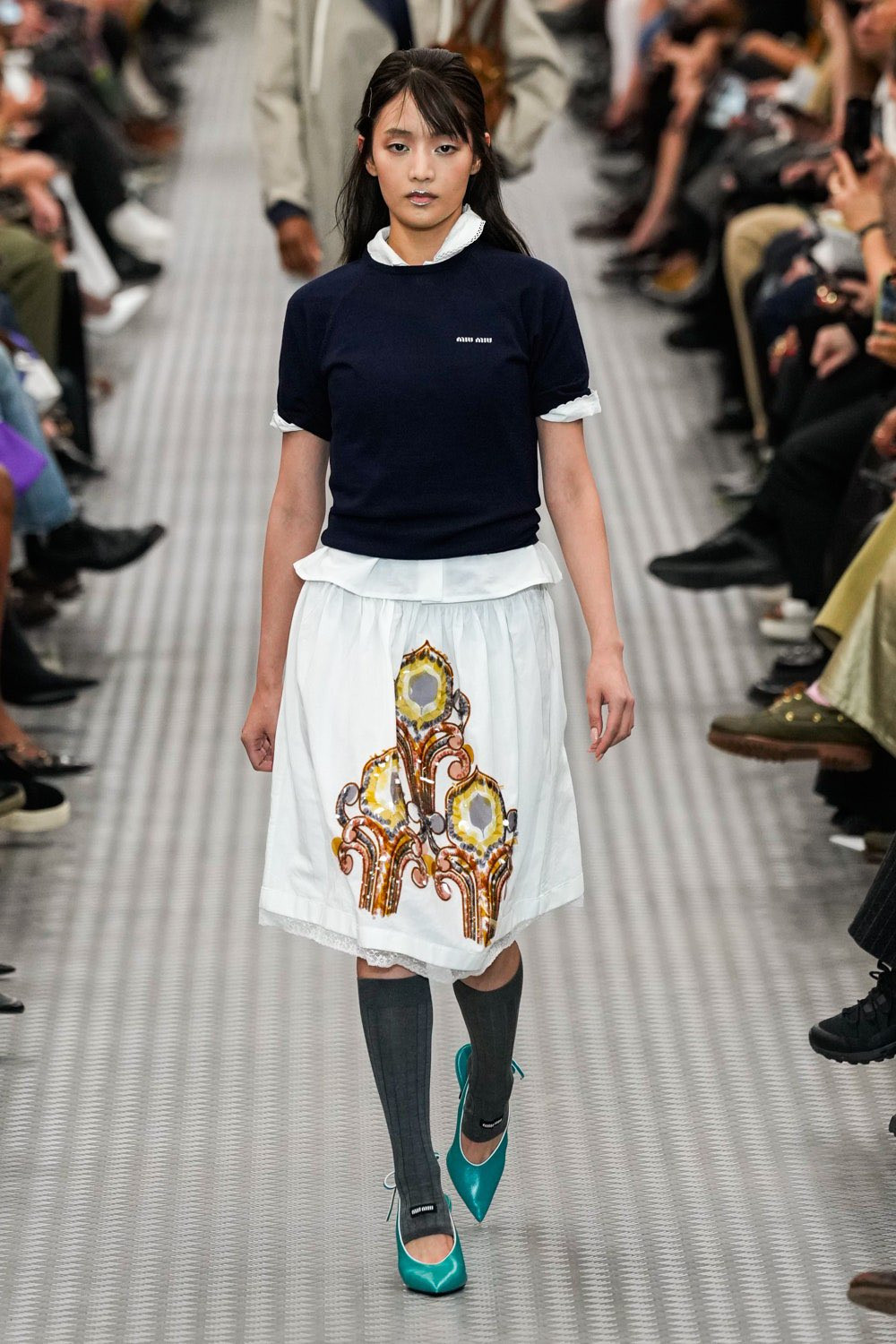 | Minnie lần đầu sải bước trên sàn runway tại show diễn của Miu Miu. |