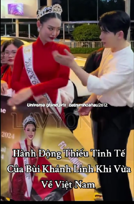Sau khi đăng quang ngôi vị Á hậu 3 Miss Intercontinental 2024 ở Ai Cập, Bùi Khánh Linh trở về Việt Nam. Minuk cùng bố mẹ Bùi Khánh Linh cũng ra sân bay từ sớm để đón cô.