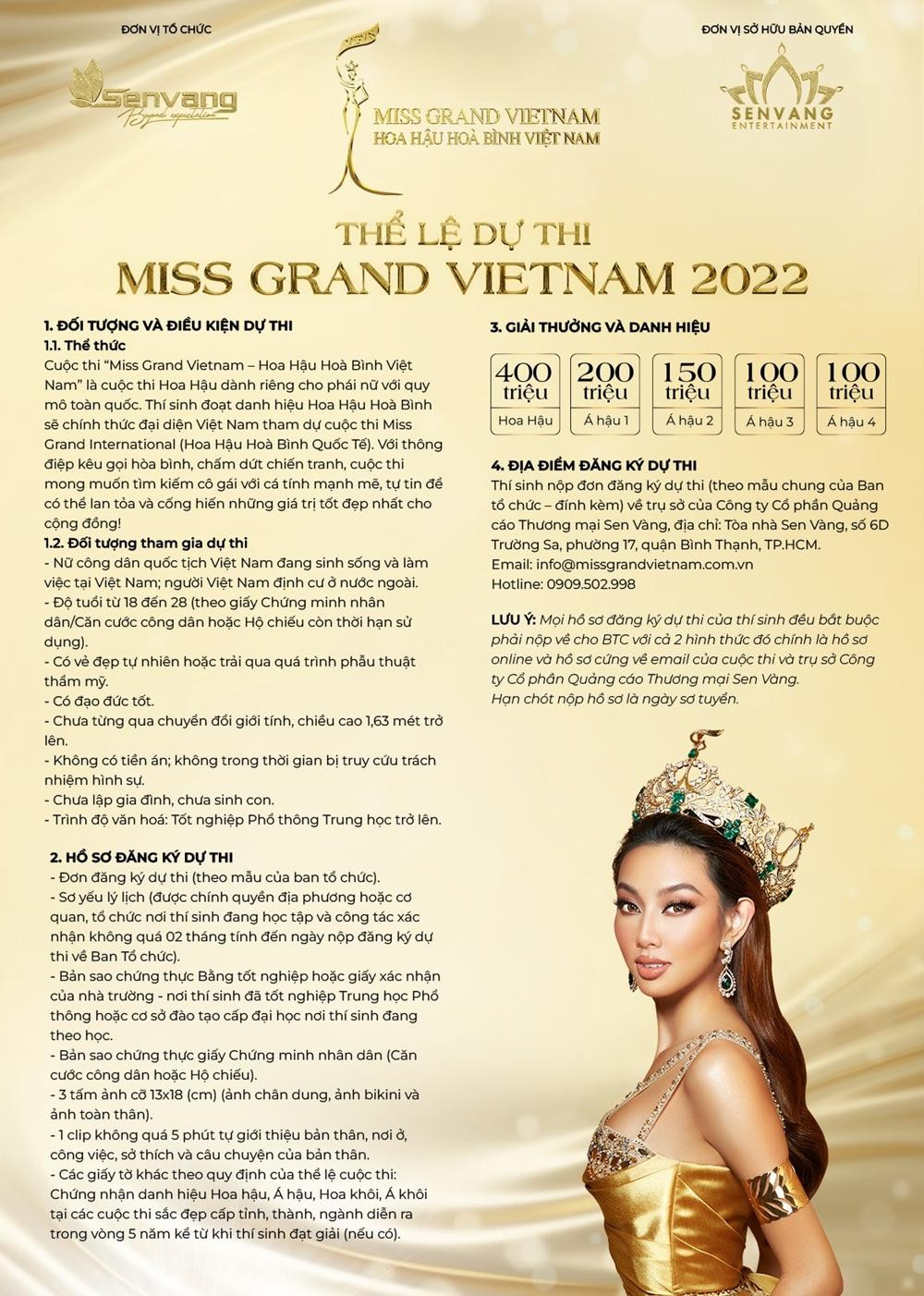 Bà Phạm Kim Dung, Giám đốc Quốc gia của Miss Grand Vietnam, CEO của Công ty Sen Vàng, nơi nắm bản quyền nhiều cuộc thi nhan sắc quốc tế tại Việt Nam còn tiết lộ ngoài Hoa hậu Việt Nam 2022 (tìm đại diện cho Miss World 2023) và Miss Grand Vietnam 2022, trong năm 2023 công ty Sen Vàng sẽ tổ chức 4 cuộc thi nhan sắc lớn.