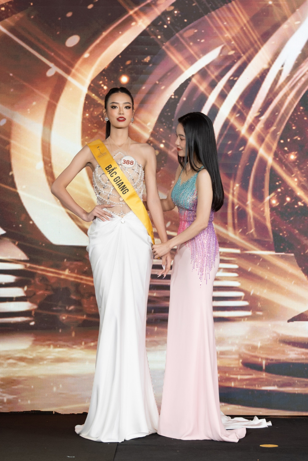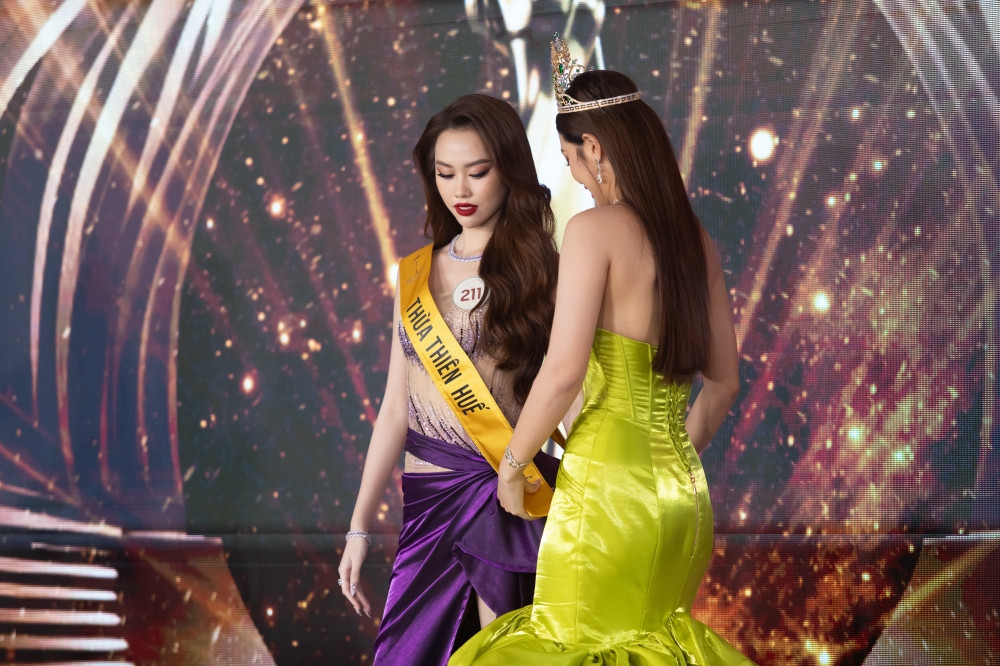 Chủ tịch Miss Grand Vietnam - bà Phạm Kim Dung cùng đương kim Hoa hậu Đoàn Thiên Ân đã trao sash đại diện tỉnh thành cho các thí sinh.