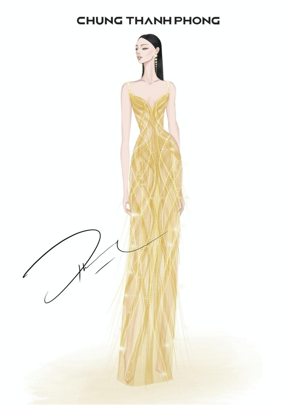Tiếp đó là mẫu Golden Lotus (Hoa sen vàng), được lấy cảm hứng từ vẻ đẹp thanh cao của hoa sen, một biểu tượng cho mặt trời, sức sáng tạo và tái sinh trong văn hóa Ai Cập cổ đại, đồng thời cũng là loài hoa quen thuộc của Việt Nam. Mẫu thiết kế được dựng form dáng corset định hình tôn dáng triệt để. Các họa tiết được vẽ tay, tạo hình những cánh hoa sen thanh thoát mềm mại, được đính kết bằng các loại pha lê, cườm và đá Swarovski cao cấp. Sắc vàng đồng được lựa chọn cho thiết kế dạ hội này được lấy cảm hứng từ sắc màu đặc trưng và hình tượng quyền lực, huyền bí từ nữ hoàng Cleopatra.
