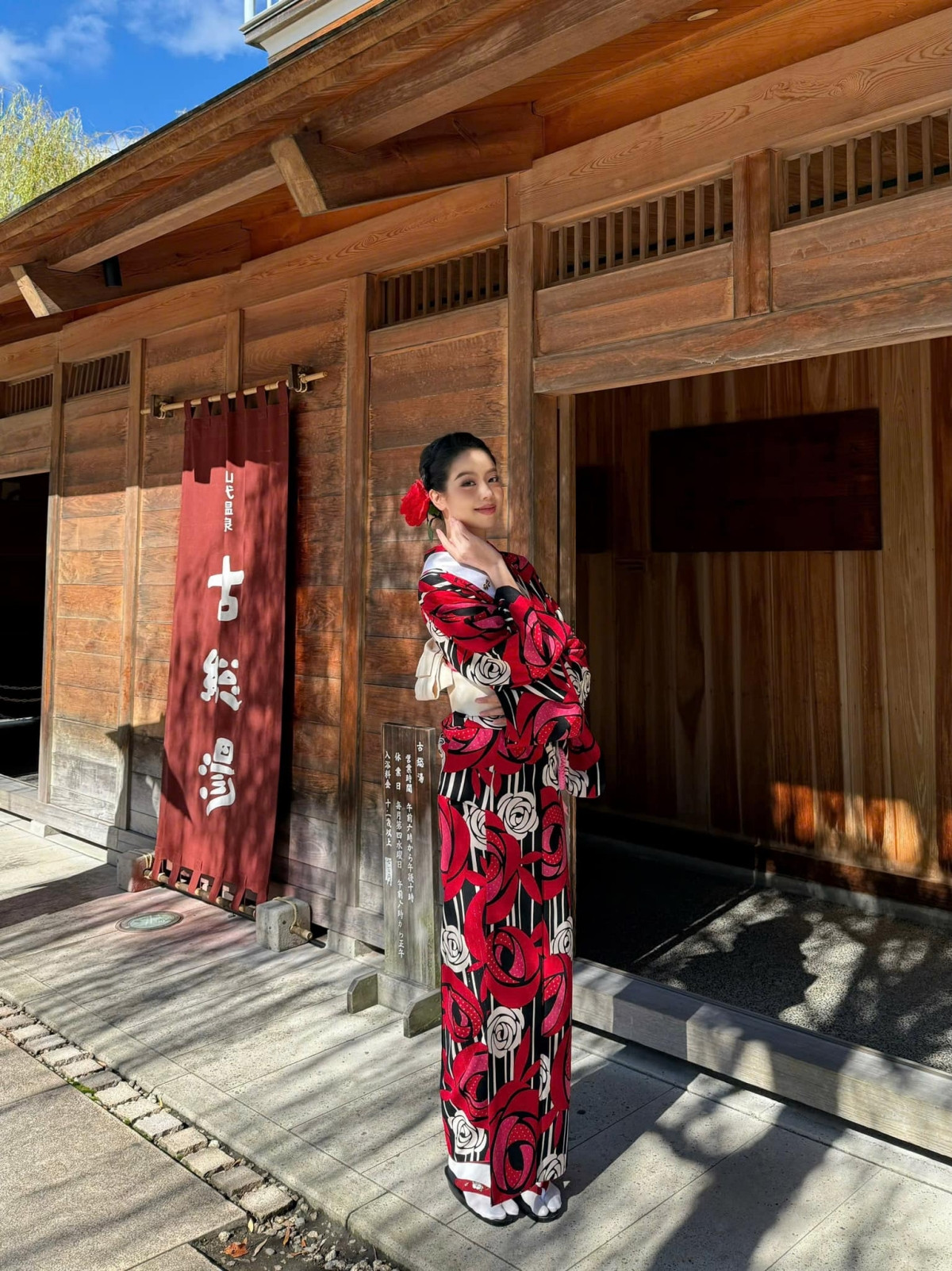Nàng hậu chia sẻ bằng tiếng Anh trên trang cá nhân (tạm dịch): "Mọi người ơi, hôm nay mình được mặc kimono và mình thật sự rất phấn khíchhh!!! Mình học được một điều rất ngạc nhiên! Khi mặc kimono, bạn phải quấn bên trái chồng lên bên phải cho người sống, còn bên phải chồng lên bên trái chỉ được dùng khi mặc cho người đã khuất. Một chi tiết rất nhỏ, nhưng lại mang ý nghĩa sâu sắc và phản ánh sự tôn trọng, chu đáo trong mọi khía cạnh của văn hóa Nhật Bản. Mình yêu văn hoá Nhật Bản!"