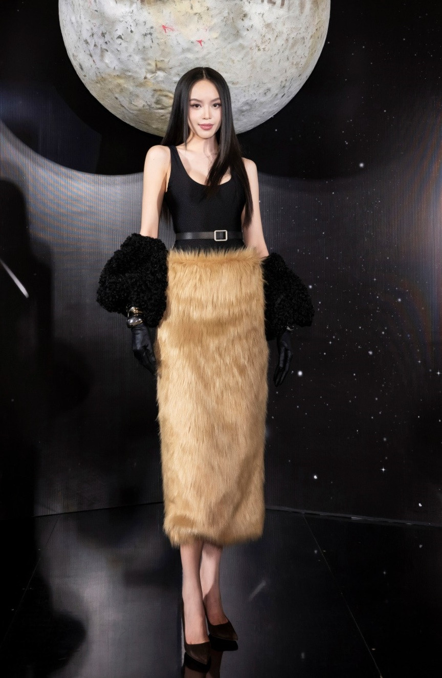 Khi đi sự kiện, nàng hậu biến hóa nhiều hơn. Không cần đội vương miện Miss International, Thanh Thủy vẫn cực sang chảnh khi làm khách mời trong show thời trang. Thiết kế này rất kén dáng nhưng nàng hậu vẫn rất tự tin sải bước trên thảm đỏ.