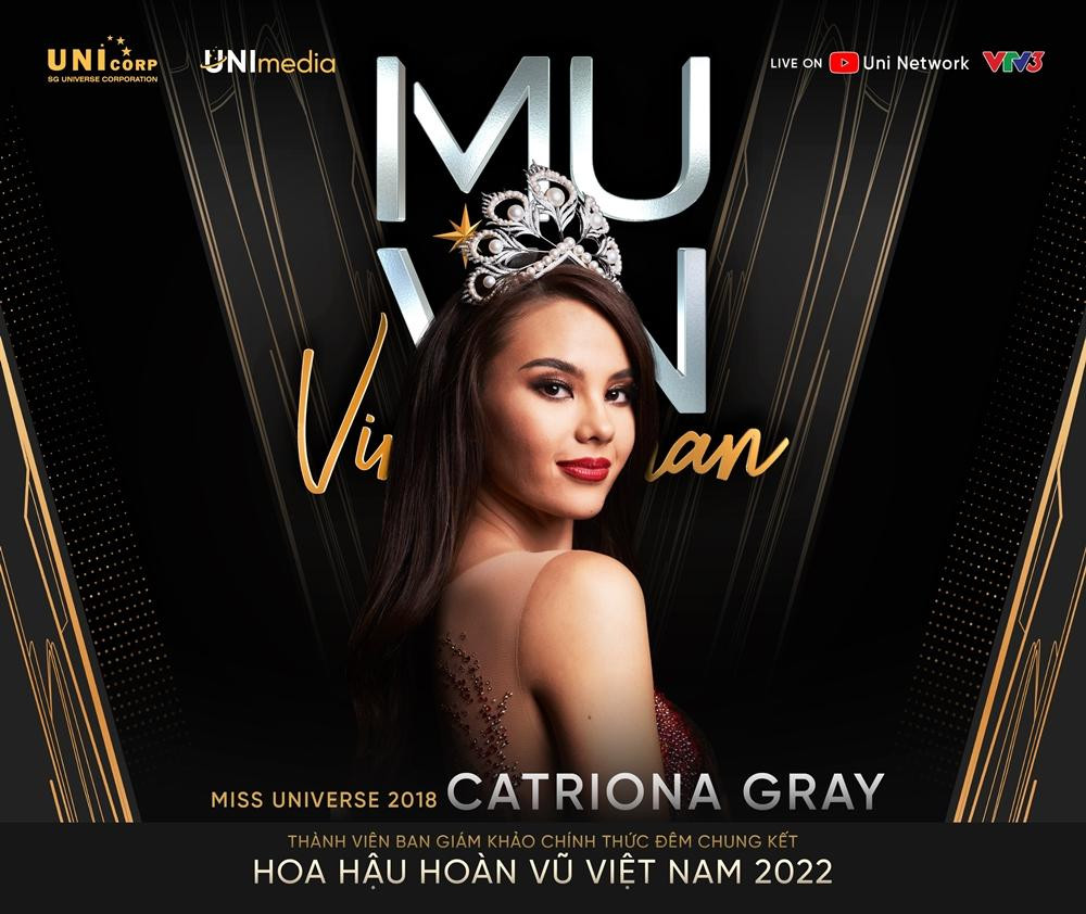 Catriona Gray sẽ là thành viên tiếp theo của hội đồng ban giám khảo Hoa hậu Hoàn vũ Việt Nam 2022 tại đêm Chung kết của cuộc thi, cùng với Hoa hậu Natalie Glebova - Miss Universe 2005.