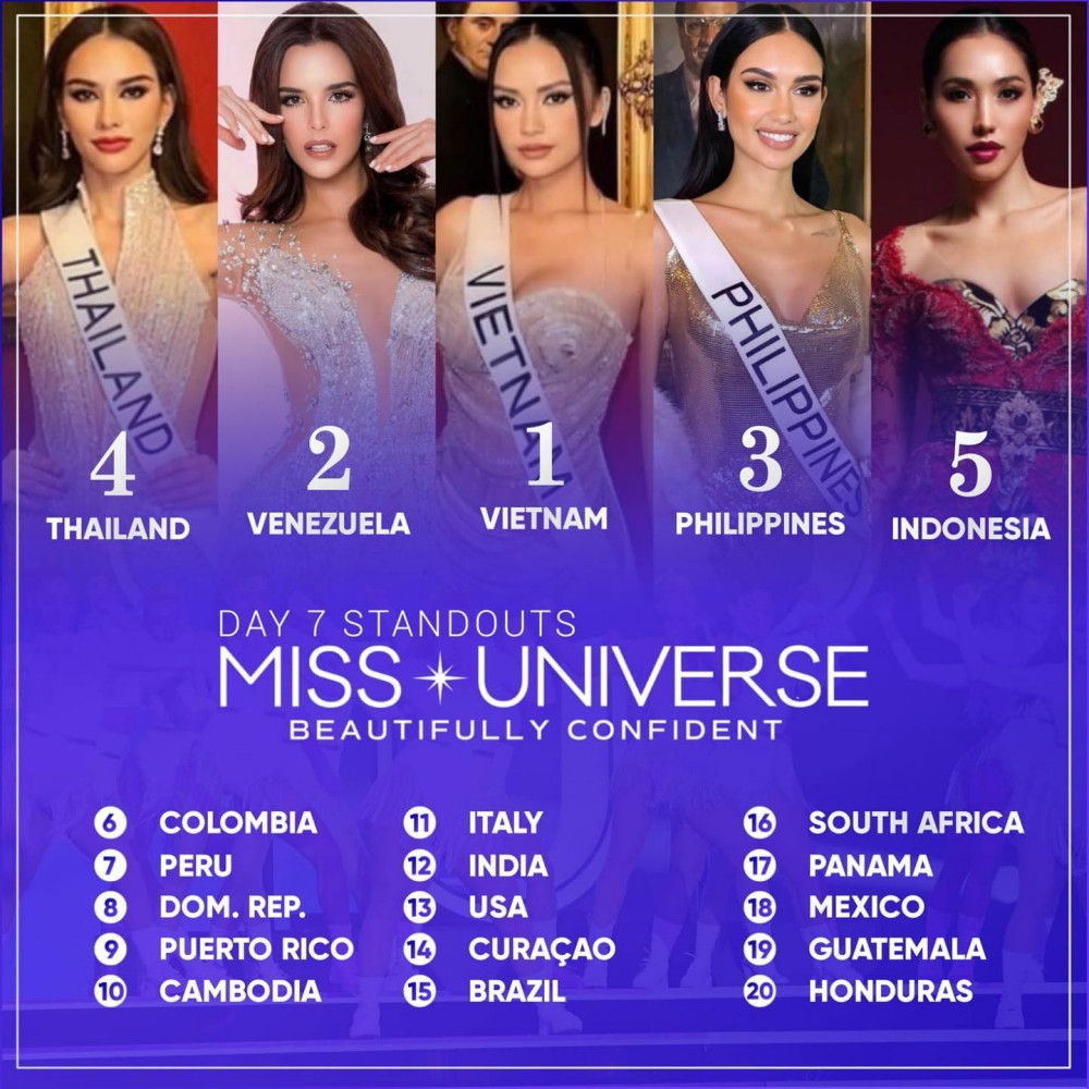 Tuy nhiên, mới đây, chuyên trang này đã tung ra BXH mới nhất, và điều đáng mừng là tên của Hoa hậu Ngọc Châu đã xuất hiện trở lại. Người đẹp được dự đoán lọt Top 20 chung cuộc ở vị trí thứ 13. BXH lần này cũng có sự thay đổi rất lớn về vị trí đầu bảng: Hoa hậu Curacao đang từ vị trí đầu tiên tụt xuống tận vị trí thứ 6.