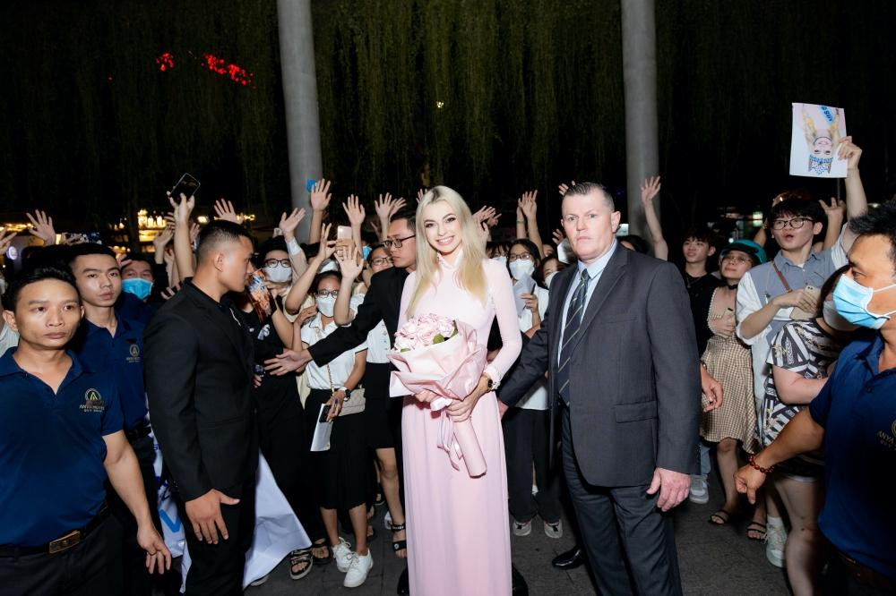 Đương kim Miss World Vietnam Lương Thùy Linh cũng đã có mặt tại sân bay từ sớm để đón chào vị khách mời quốc tế vô cùng đặc biệt này.