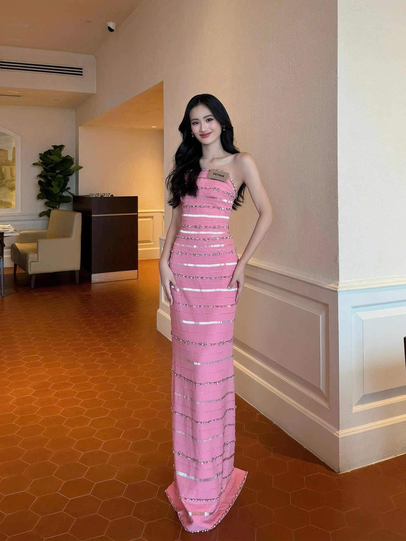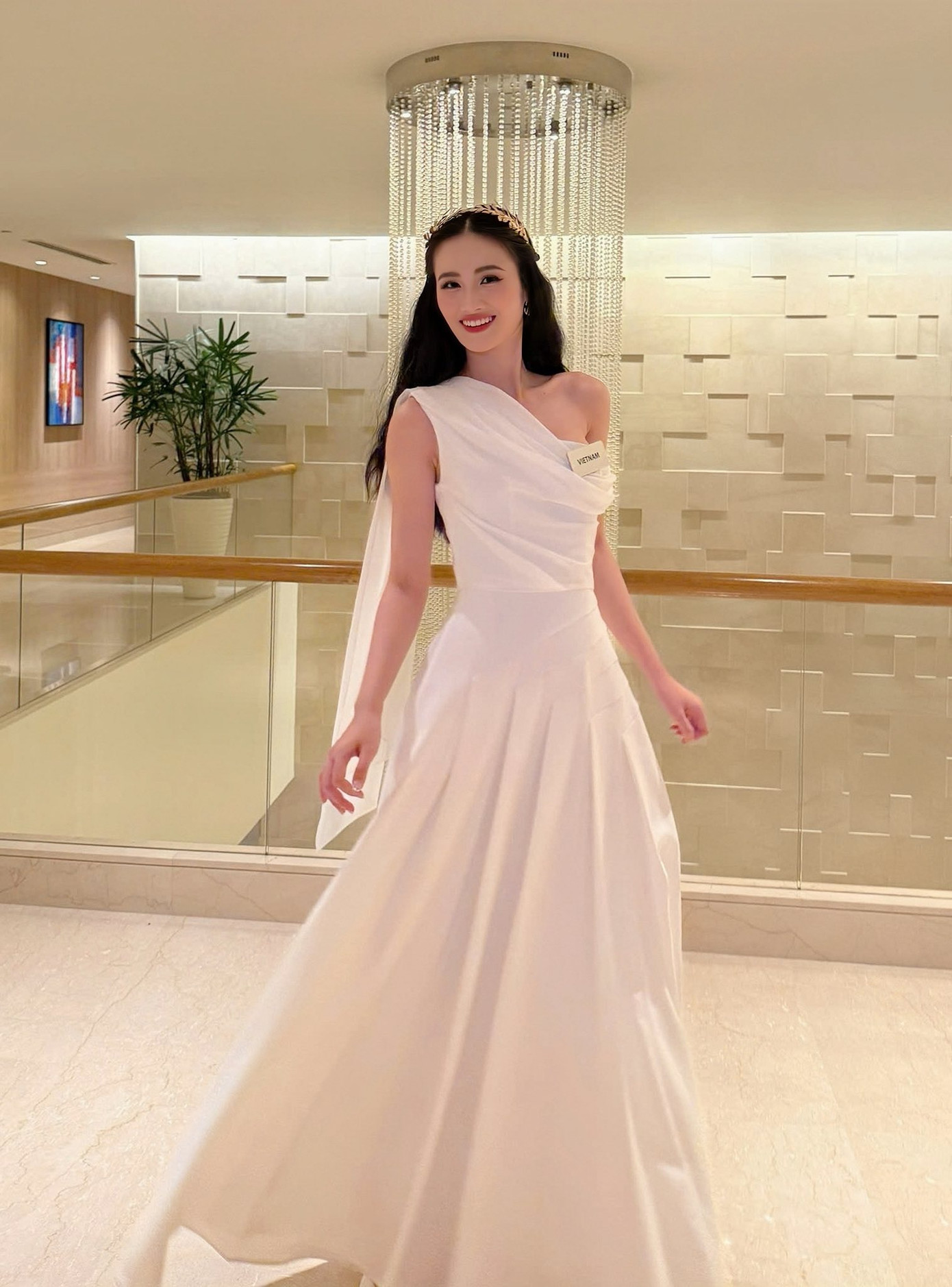 Miss World là đấu trường nhan sắc tôn vinh vẻ đẹp dịu dàng, thanh lịch và tri thức nên Hoa hậu Ý Nhi lựa chọn trang phục theo phong cách này. Đại diện Việt Nam mang theo nhiều bộ váy dài với chất liệu mềm mại tạo cảm giác bay bổng nhẹ nhàng.