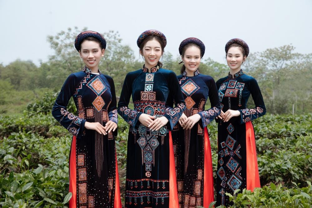 Đến với đồi chè Tân Cương các cô gái xuất hiện trang tà áo dài truyền thống của Việt Nam được may bằng chất liệu thổ cẩm của dân tộc Tày - một trong những dân tộc có dân cư tập trung cao nhất tại Thái Nguyên. Nhóm thí sinh gồm có: