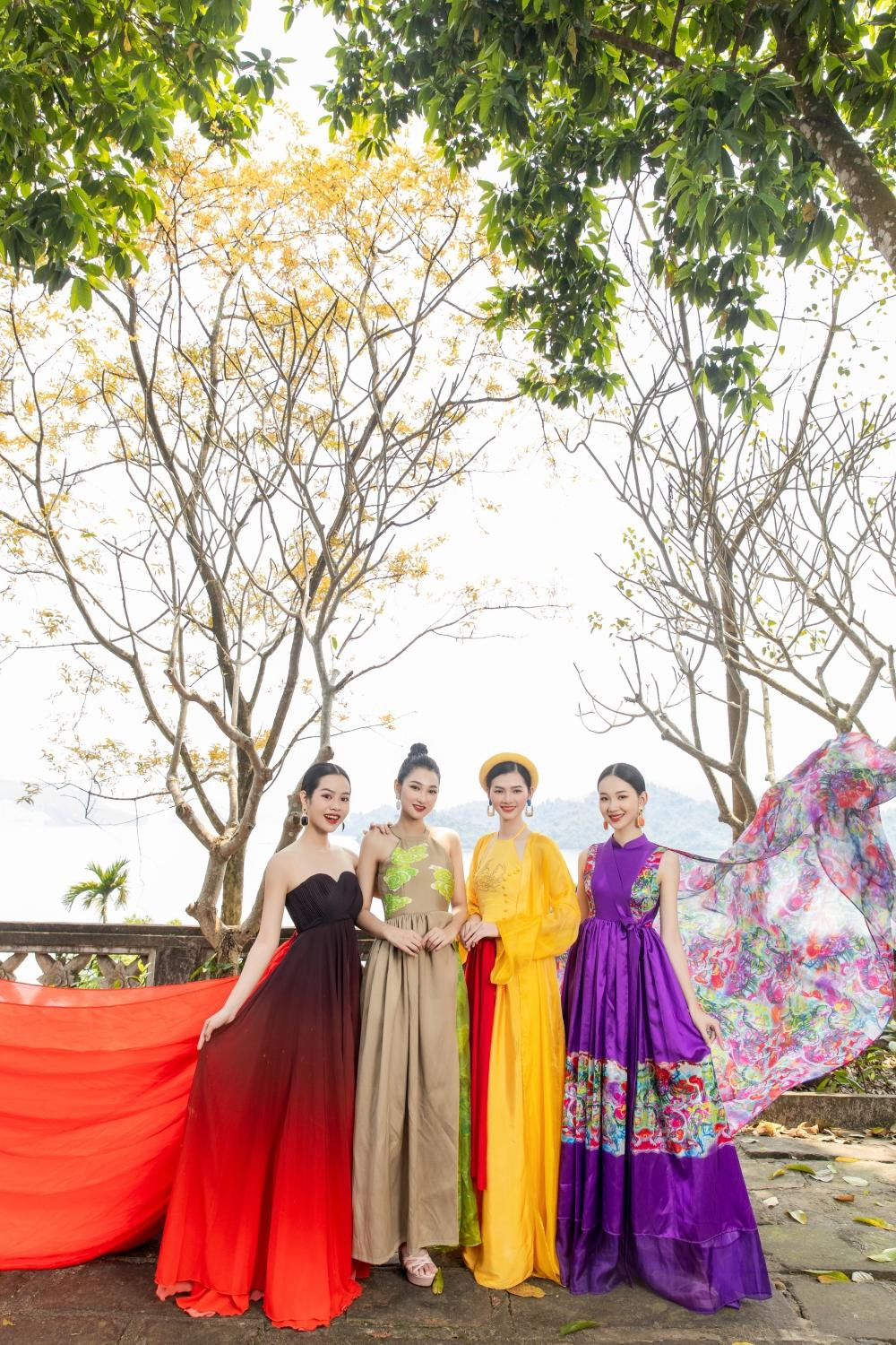 Khác với các nhóm thí sinh khác, 4 cô gái khi đặt chân đến Hồ Núi Cốc đều diện những trang phục với màu sắc bắt mắt của NTK La Sen Vũ.