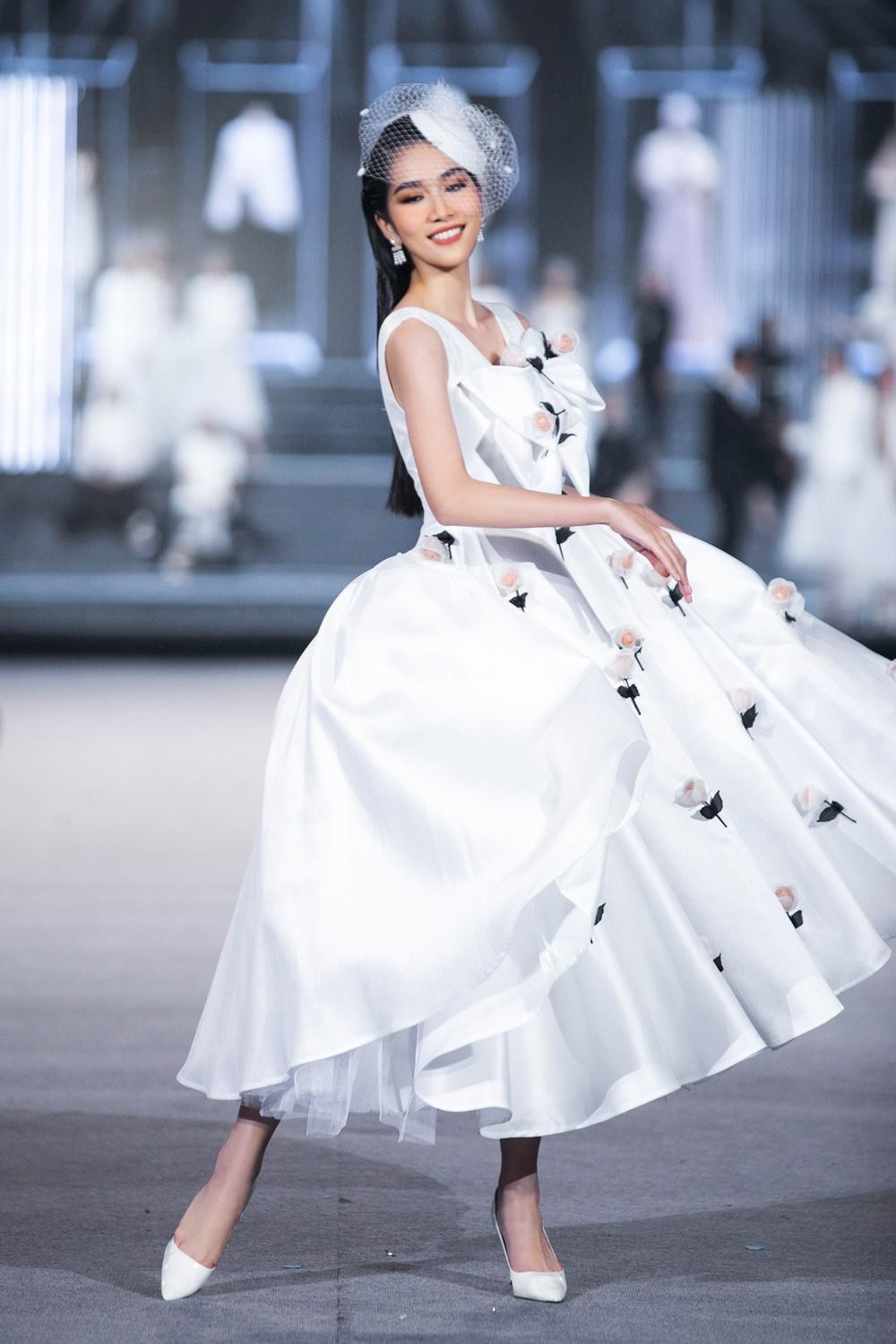 Nếu đêm trước nàng hậu hóa thân thành “nàng tiên hoa” thì ở đêm diễn thứ 2, mọi người lại được thấy một búp bê Đỗ Thị Hà bước ra đời thật với những bước catwalk thần thái vô cùng đáng yêu.