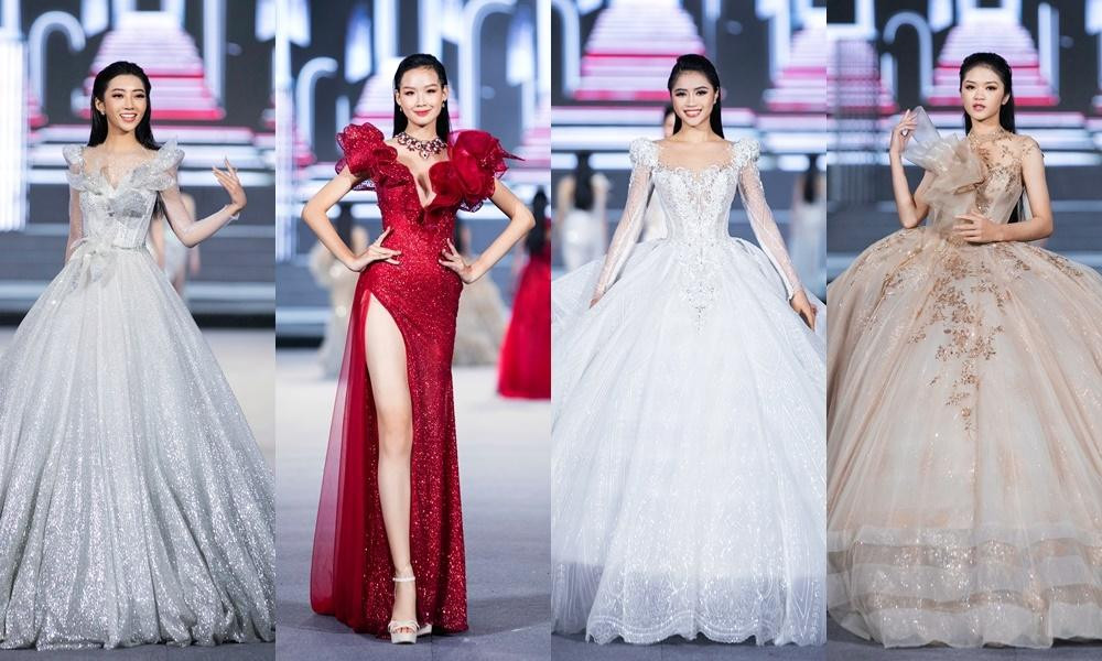 Các thí sinh Top 64 Miss World Vietnam 2022 trình diễn BST của NTK Võ Thành Can.