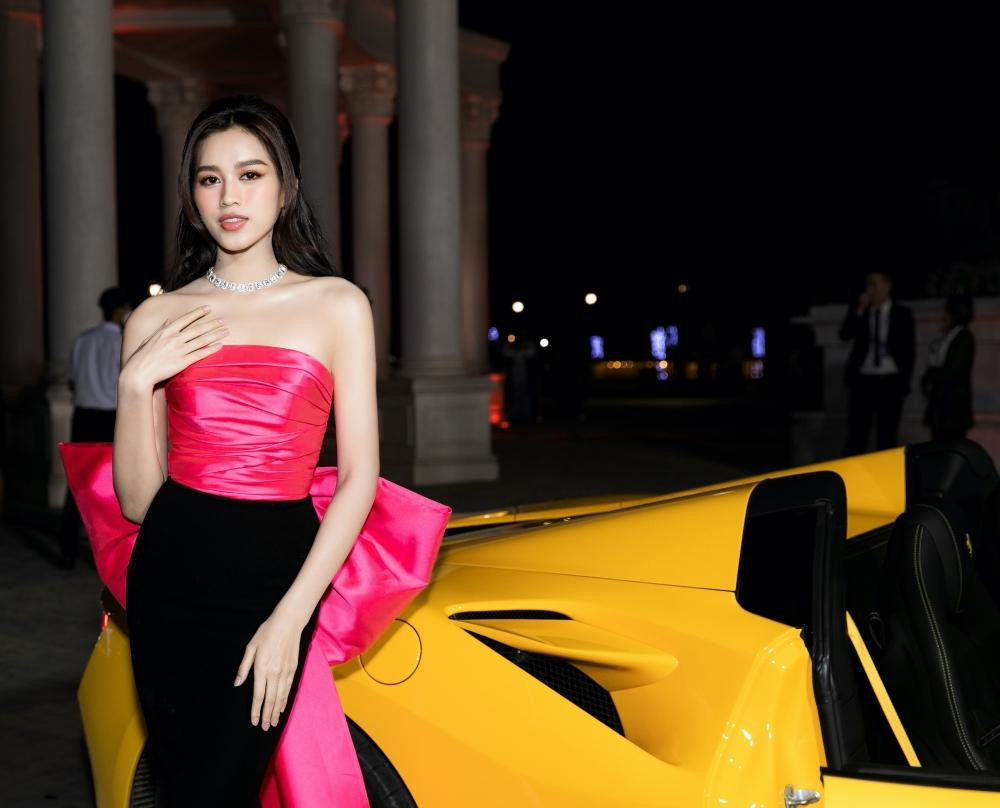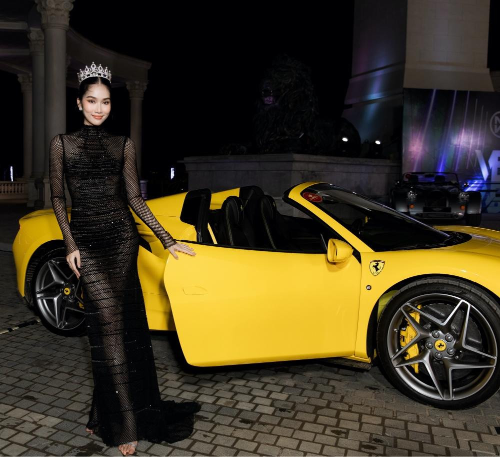 Hoa hậu Tiểu Vy cũng diện thiết kế dạ hội đen lấp lánh, khoe nhan sắc chuẩn quốc tế.