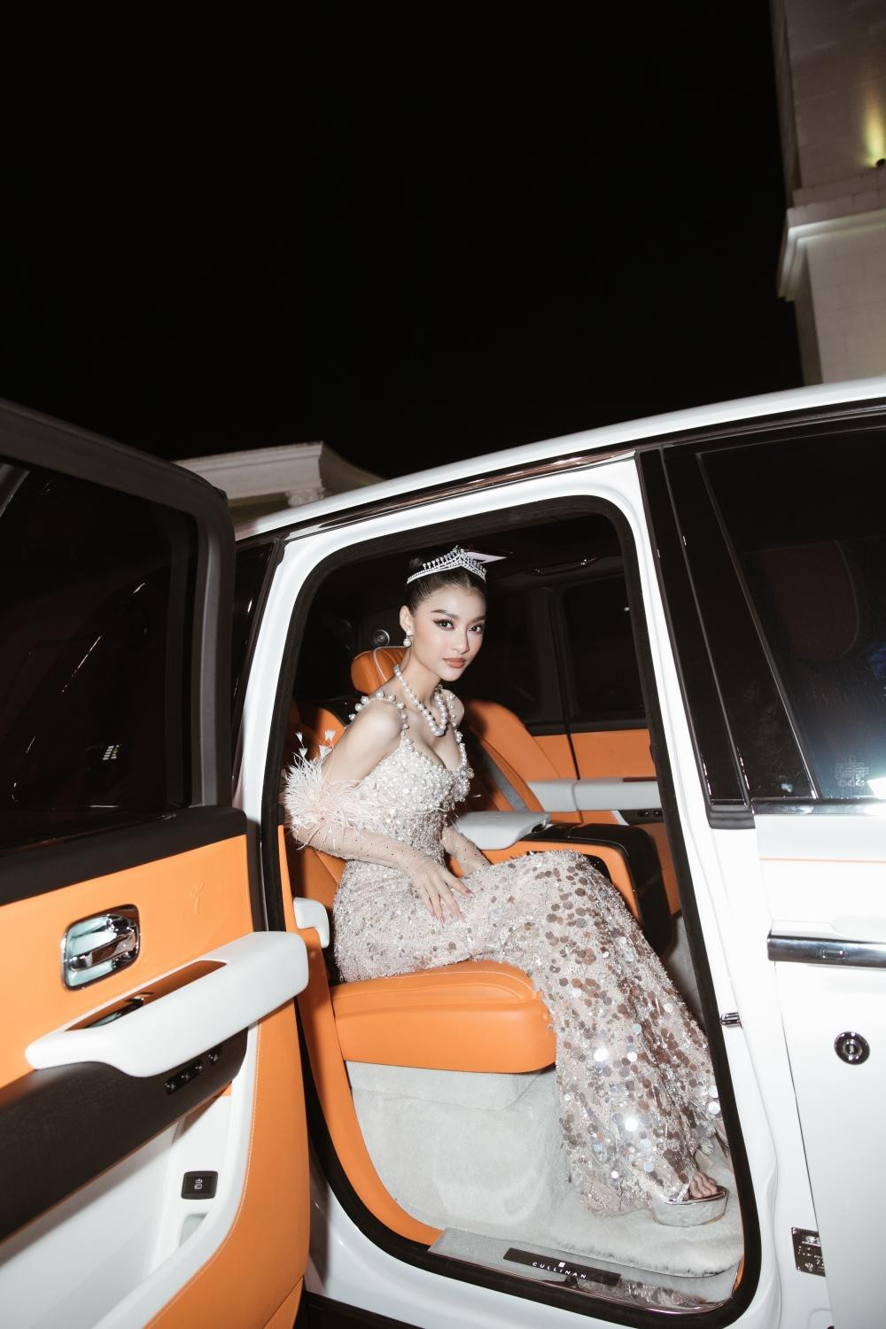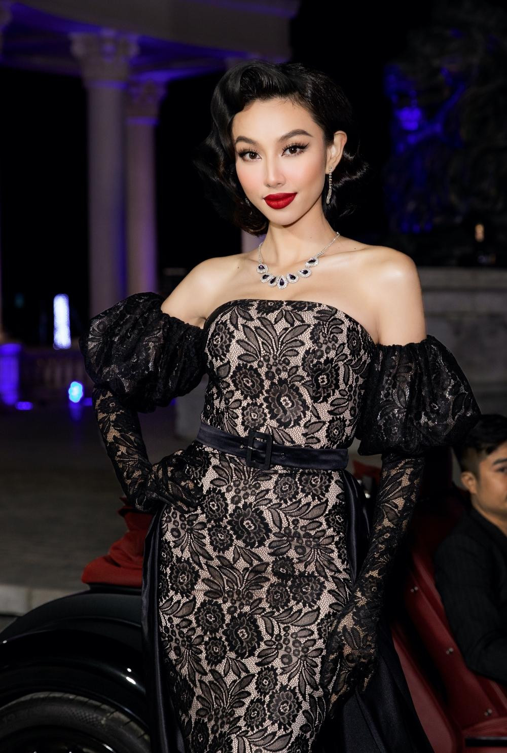 Hoa hậu Thuỳ Tiên mặc thiết kế mang đậm phong cách của một minh tinh Hollywood những thập niên xưa, vô cùng nổi bật và lộng lẫy.