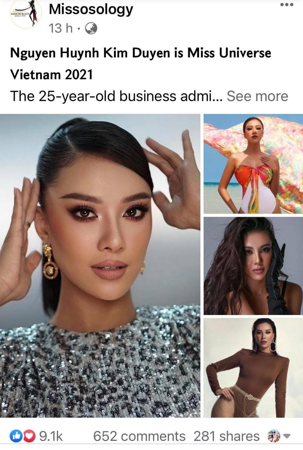Cũng trong ngày hôm qua, Missosology còn giới thiệu một đại diện tiếp theo của Việt Nam, đó là Á hậu Nguyễn Huỳnh Kim Duyên. Kim Duyên gần như là thí sinh đầu tiên của Miss Universe 2021 được chuyên trang này giới thiệu.