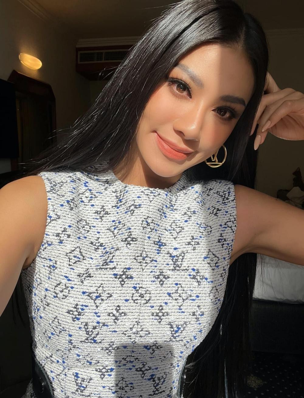 Trong ngày thứ 3, nàng hậu không chọn mặc trang phục của NTK trong nước, mà chọn một thiết kế của thương hiệu Louis Vuitton, cầm túi Chanel đắt giá. Không như Hoa hậu Khánh Vân trước đó, Á hậu Kim Duyên theo đuổi phong cách sang chảnh và thời thượng.