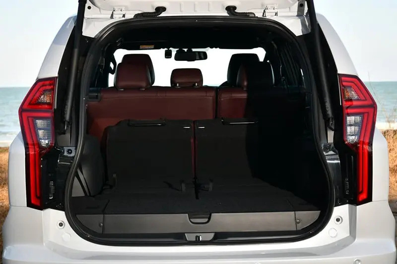 Hệ thống trang bị an toàn tiêu chuẩn với 7 túi khí, phanh ABS, phân bổ lực phanh điện tử EBD, hỗ trợ khởi hành ngang dốc, hỗ trợ xuống dốc, khóa vi sai cầu sau cho bản 4WD, cảnh báo tiền va chạm, camera toàn cảnh, hệ thống kiểm soát hành trình thích ứng và cảm biến đỗ xe phía sau.