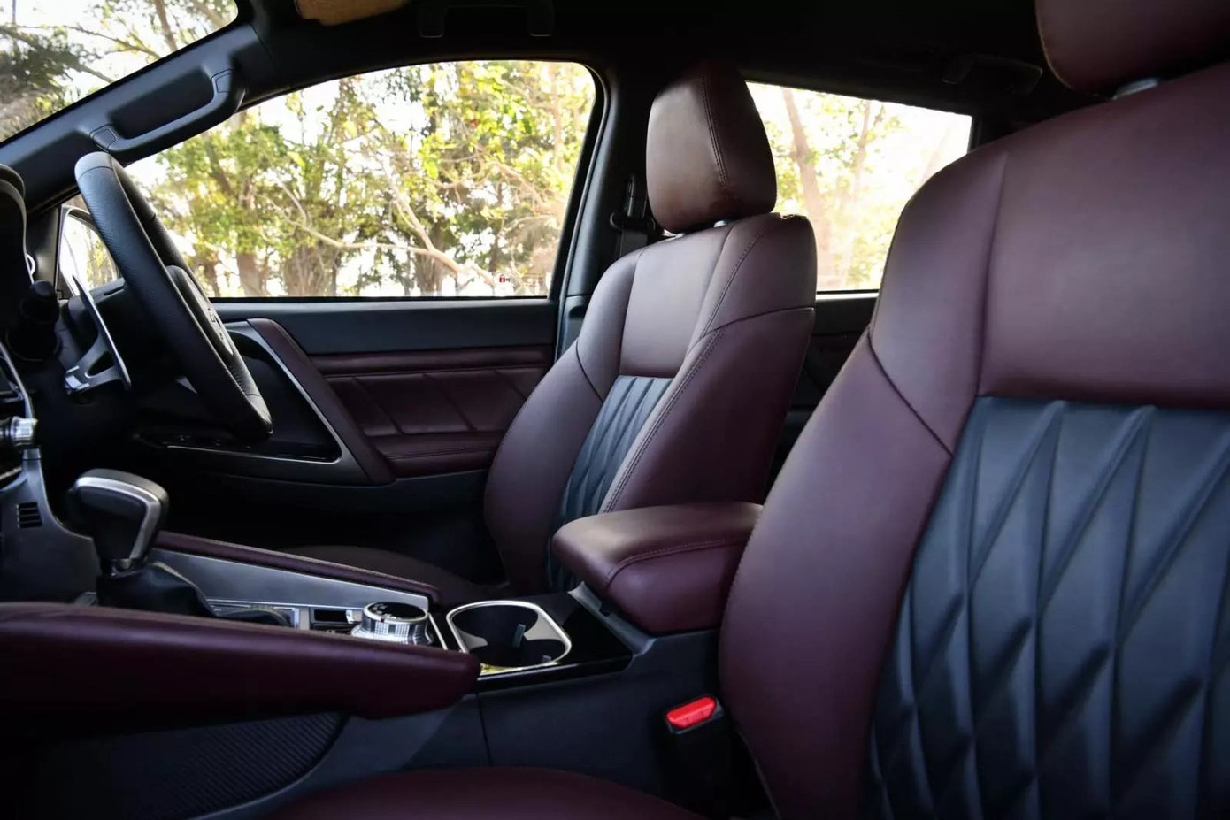 Bên trong cabin, Pajero Sport 2024 sở hữu nội thất mới với hai tông màu đỏ-đen chủ đạo. Vô lăng 3 chấu mới tích hợp lẫy chuyển số. Bảng đồng hồ kỹ thuật số 8 inch mới nhưng chỉ cho bản cao cấp trong khi bản thường vẫn dùng bảng đồng hồ analog với màn hình đa thông tin đa sắc TFT 4,2 inch.
