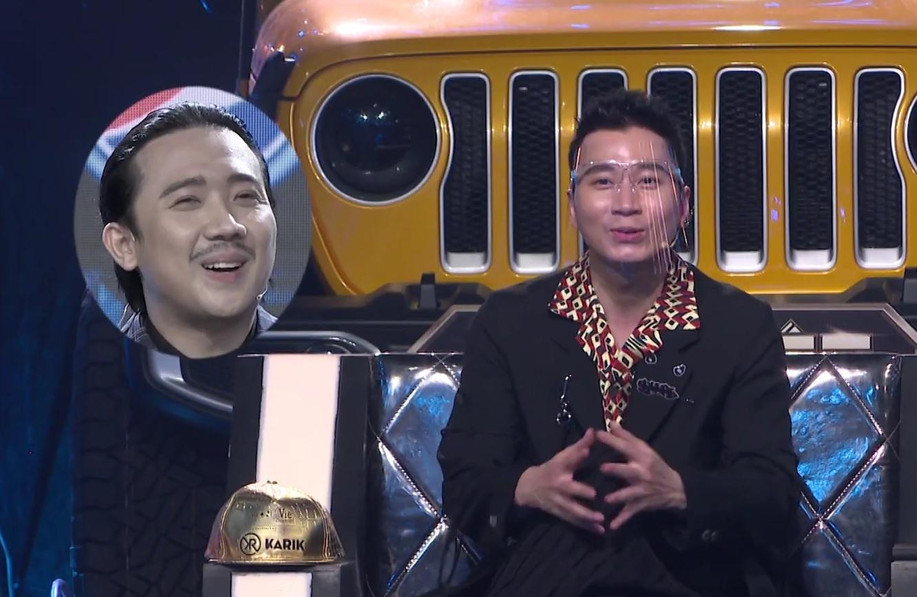 “Trở lại đây sau mùa dịch, mọi người hình như ai cũng đẹp trai hẳn ra nhỉ?”, MC Trấn Thành vừa dứt lời chào hỏi đã nhận phải câu nói cực phũ của Karik: “Dạ trừ anh”. Rất nhanh nhảu, Trấn Thành liền hỏi ngay Karik xem có “đang không hài lòng mình điều gì không?...”, Karik lập tức thanh minh: “Dạ không, anh cũng đẹp hơn nhưng mà đẹp lão ạ, vì có thêm bộ râu”. “Không sao, nhưng em vẫn đẹp trong mắt anh, chỉ là... chưa có duyên thôi”, Trấn Thành "một chín một mười" đáp lại.