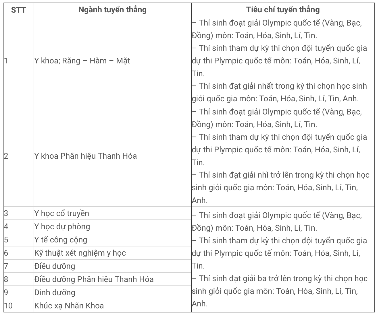 Trong trường hợp số lượng hồ sơ đăng ký vượt chỉ tiêu tuyển thẳng, ĐH Y Hà Nội xét theo tiêu chí ưu tiên lần lượt là thứ tự đoạt giải, điểm trung bình chung học tập lớp 10, lớp 11, lớp 12.
