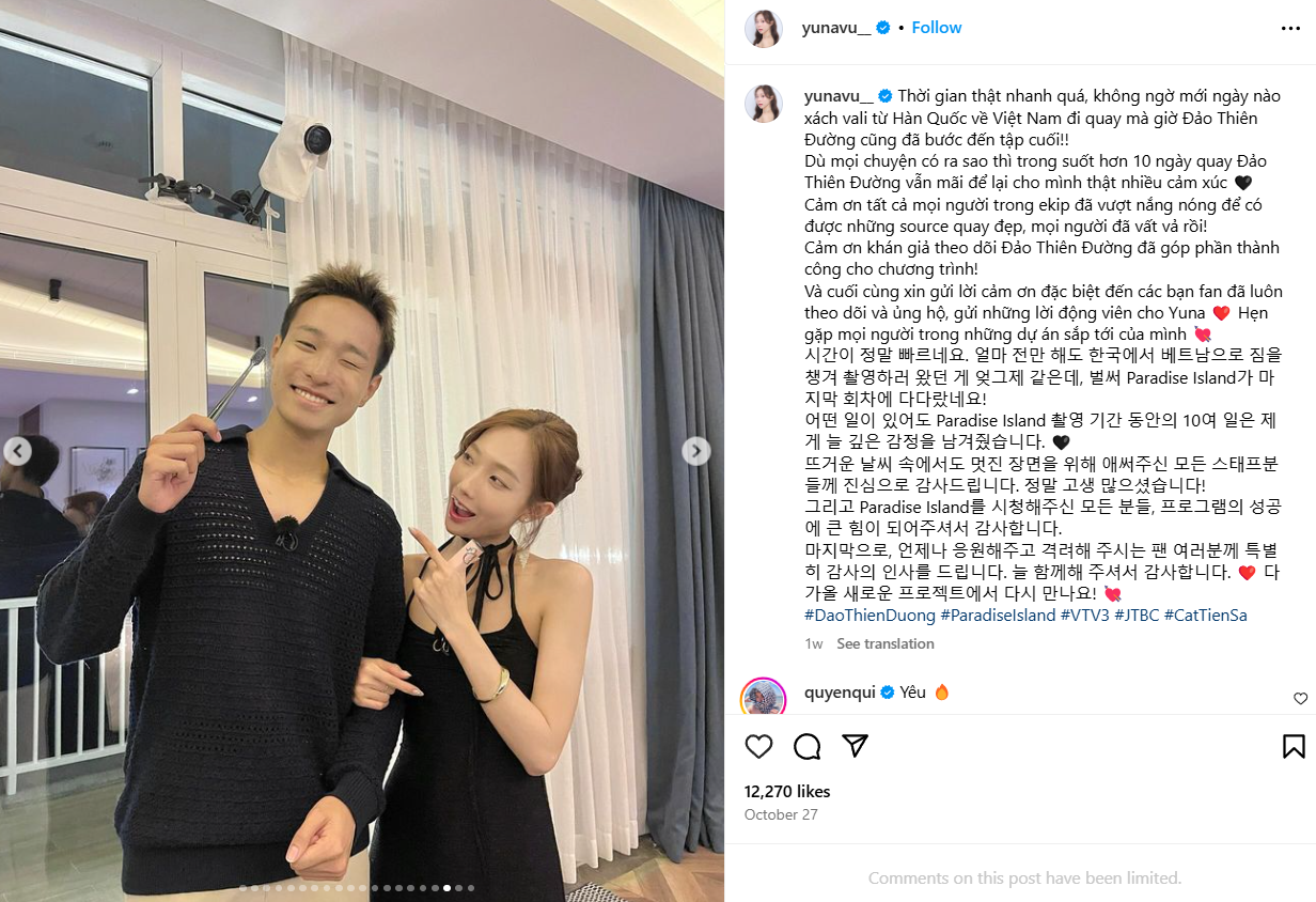 Yuna Vũ và Ra Yeon được cho là đã không nói chuyện với nhau sau cuộc gặp gỡ "tay ba" căng thẳng. Dù duy trì trạng thái theo dõi nhau trên Instagram, hai mỹ nhân không để lại bình luận hay đăng tải hình ảnh chụp riêng với nhau trong tâm thư trên Instagram hậu chương trình.