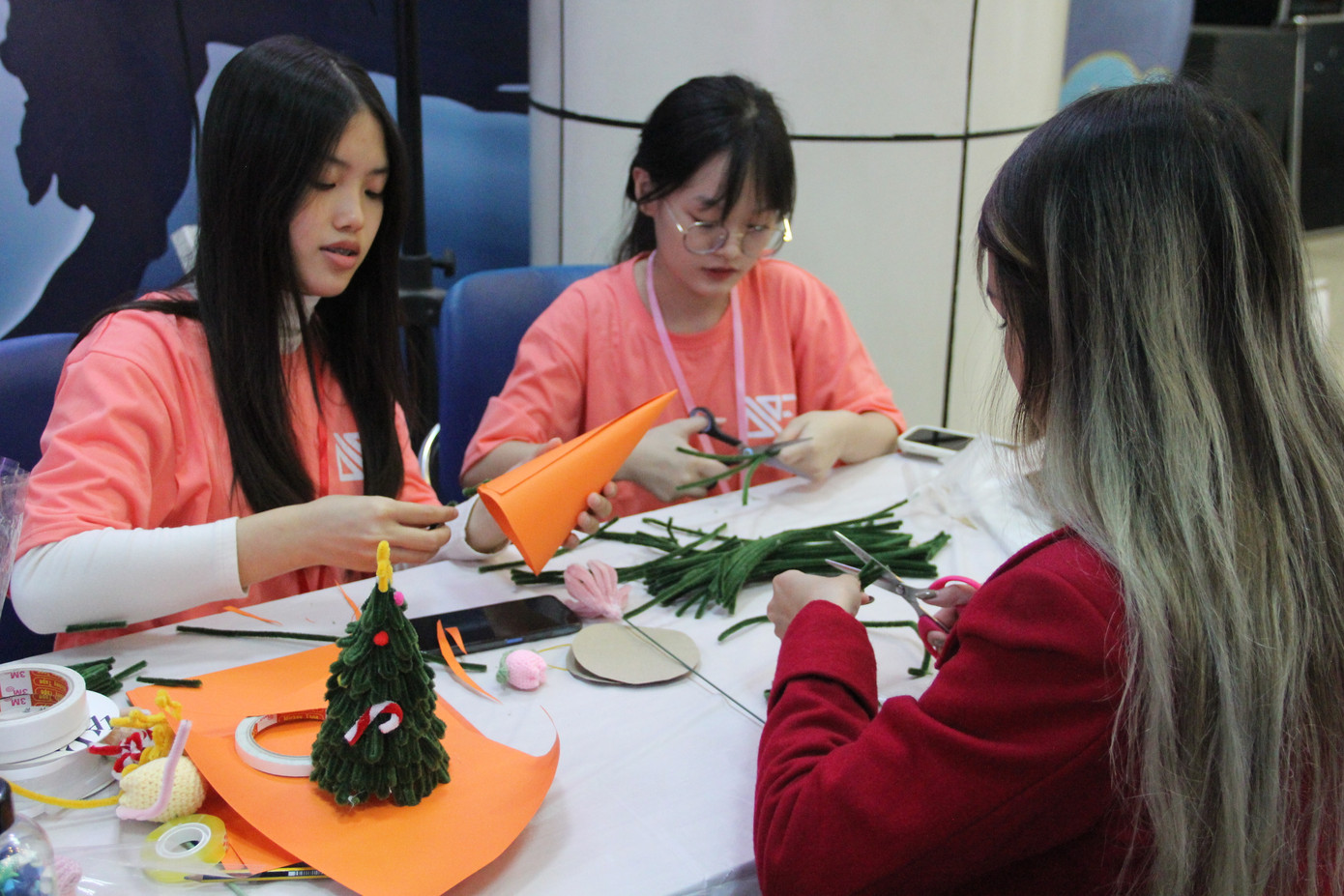 Một góc nhỏ dành cho ai muốn làm đồ trang trí bằng kẽm nhung được MỌT bày trí xinh xắn. Những cây thông kẽm nhung đang gây sốt thời gian qua có thể được teen chế tác ngay tại đây.