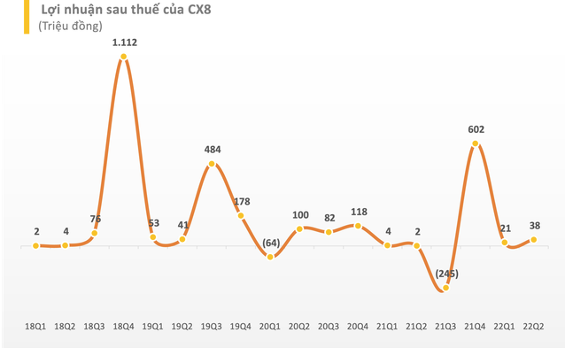 Gần nhất, nửa đầu năm 2022, doanh thu CX8 đạt hơn 34 tỷ đồng. Tuy nhiên giá vốn hơn 32 tỷ đã ăn mòn gần hết doanh thu, kết quả CX8 chỉ lãi hơn 56 triệu đồng sau 6 tháng đầu năm 2022.