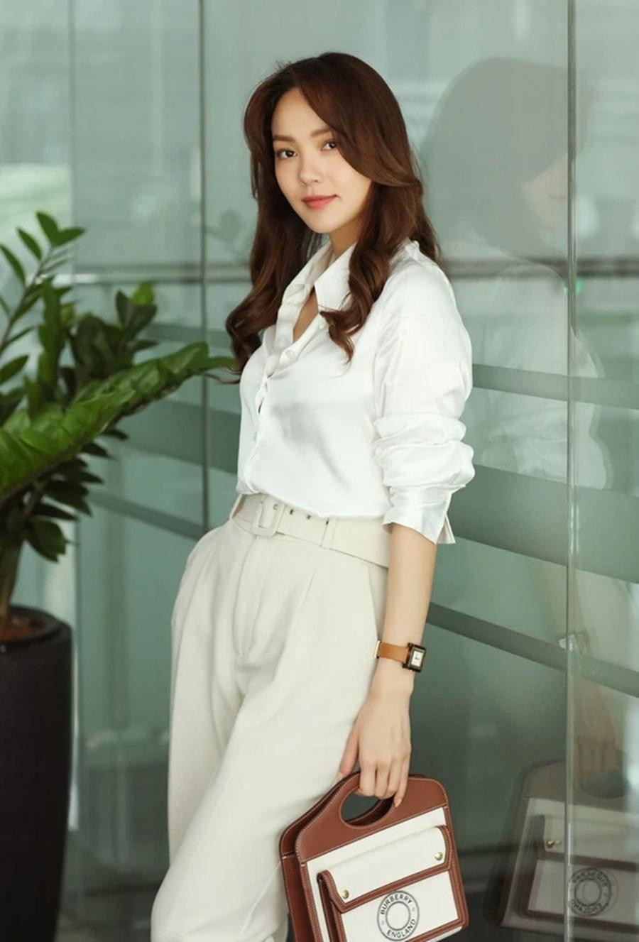 Không cần trang phục quá màu mè hay dùng nhiều phụ kiện, Minh Hằng chỉ cần diện đồ màu sắc nhã nhặn là vẫn sáng bừng cả khung hình và khiến khán giả giờ đây thật khó chọn ra đâu là nữ chính diện đồ công sở đẹp hơn: Vân Trang (Thương Ngày Nắng Về) hay Tất Thắng (Mẹ Ác Ma, Cha Thiên Sứ).