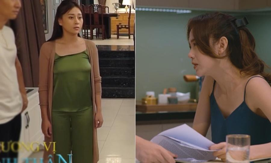 Thậm chí hai nữ chính còn đụng hàng đồ mặc nhà là áo hai dây chất liệu lụa bóng. Cùng một kiểu áo nhưng khán giả nhận xét nhìn Minh Hằng nhẹ nhàng còn Phương Oanh lại gặp tình huống áo xộc xệch vì quá chật.