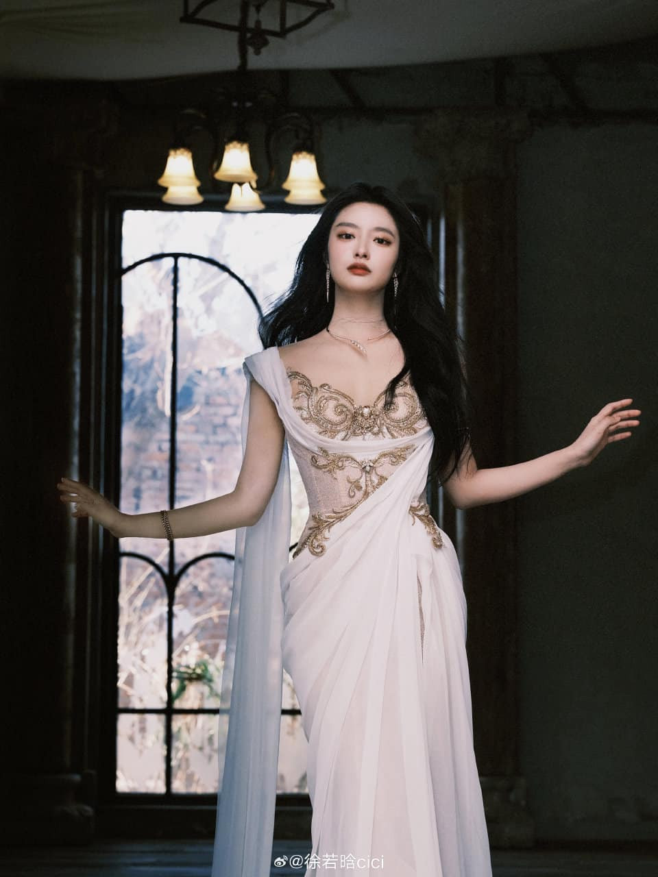 Xuất hiện trong Đêm hội Weibo chỉ một ngày sau đó, Từ Nhược Hàm tiếp tục lựa chọn thiết kế của thương hiệu Joli Poli. Nữ diễn viên Thiếu Niên Minh Long khiến netizen trầm trồ nhờ nhan sắc bùng nổ trong tạo hình nữ thần Hy Lạp.