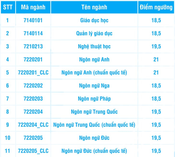 Lưu ý, mức điểm sàn này không áp dụng với phương thức xét tuyển chương trình liên kết quốc tế ngành kinh doanh quốc tế và tài chính quốc tế.