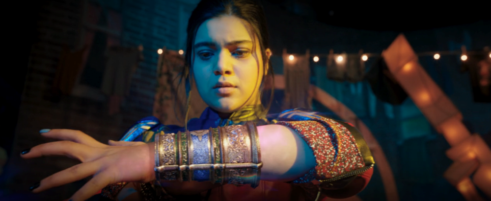 Vậy nhưng trong tập phim mới nhất, sức mạnh của Ms. Marvel đến từ chiếc vòng tay được bà ngoại gửi tặng. Khi Kamala tham dự buổi tiệc AvengerCon, vì muốn trở thành “hàng độc” trong cuộc thi hóa trang thành Captain Marvel, cô đã đeo chiếc vòng tay bí ẩn mang phong cách quê hương Pakistan và bỗng có khả năng tạo những dạng năng lượng màu sắc kỳ lạ, dẫn đến khả năng nhân vật này vẫn không phải là Inhuman trên màn ảnh MCU.