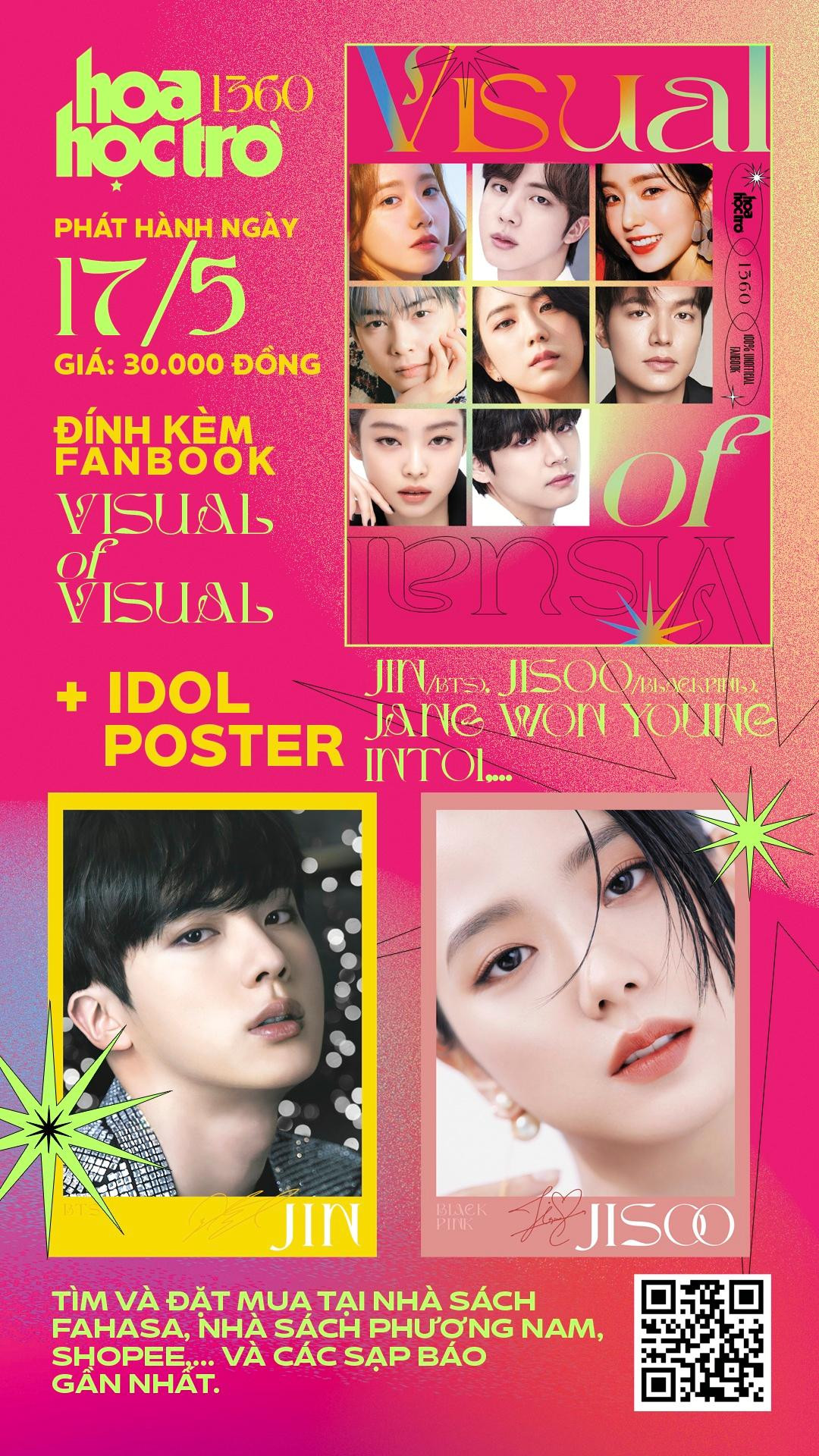 Hoa Học Trò 1360 tặng kèm 2 fanbook Visual of Visual và Idol poster Jin (BTS) và Jisoo (BLACKPINK) sẽ chính thức phát hành vào thứ Hai (ngày 17/5/2021) tại các sạp báo trên toàn quốc, các nhà sách FAHASA, nhà sách Phương Nam, Shopee với giá quen thuộc chỉ 30.000 đồng. Cùng đón xem nha!