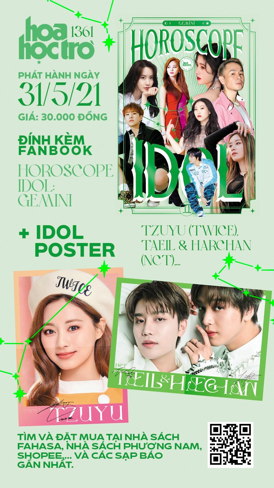 Hoa Học Trò 1361 tặng kèm fanbook Horoscope Idol Song Tử, 2 idol poster TZUYU (TWICE), TAEIL & HANRCHAN (NCT) sẽ chính thức phát hành vào thứ Hai, ngày 31/5/2021 với giá chỉ 30.000 đồng tại các sạp báo, Shopee, nhà sách FAHASA, nhà sách Phương Nam… trên toàn quốc. Đừng bỏ lỡ nhé!