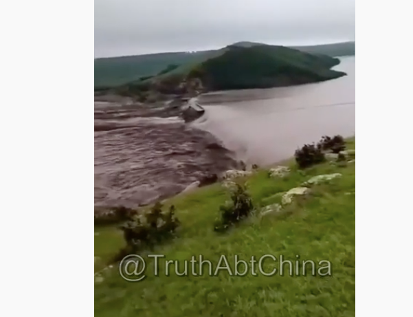 Những đoạn phim được đưa lên mạng xã hội cho thấy một con đập bị nước cuốn phăng, nhấn chìm những cánh đồng xung quanh.