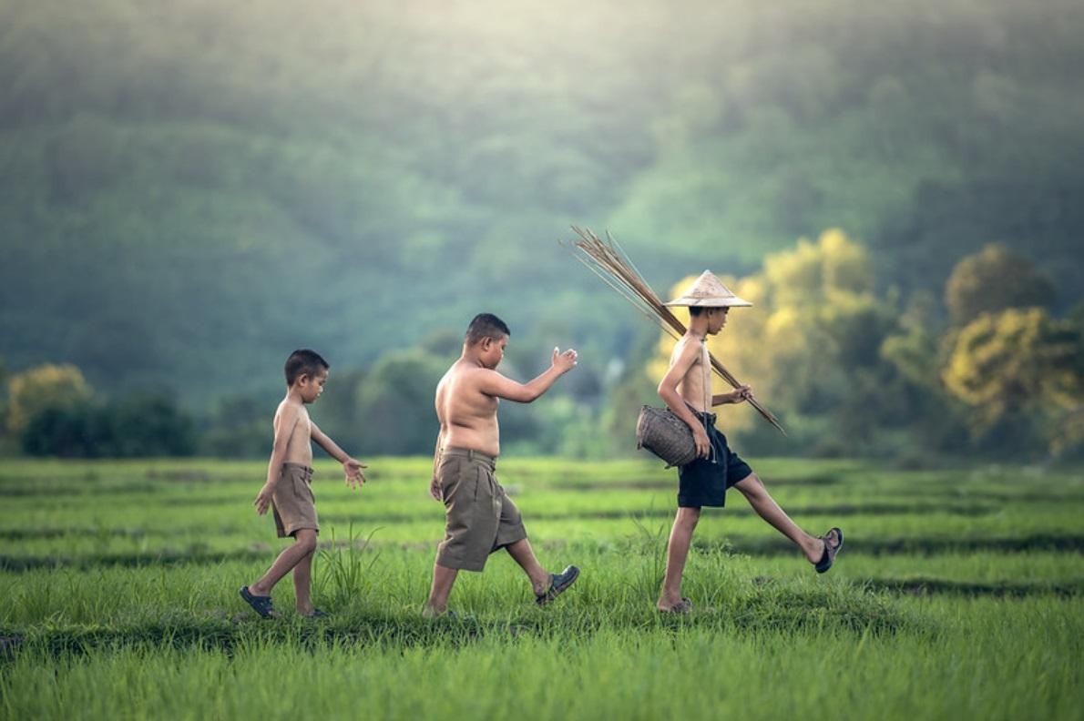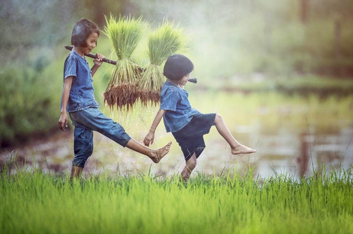 Ra đồng, sau khi để lũ trâu, bò tự do gặm cỏ, bọn chúng tôi túm lại bẻ sậy làm ống thổi và hòa xà bông cho chúng tan thành nước. Từng đàn bong bóng to nhỏ khác nhau, với đa sắc màu hồng, tím, xanh nối đuôi nhau tuôn ra theo ống thổi bay lên trời cao, theo gió cuốn. Bọn chúng tôi thi xem đứa nào thổi mỗi lần được nhiều bong bóng nhất, và cái nào bay được cao nhất, lâu bị vỡ nhất…