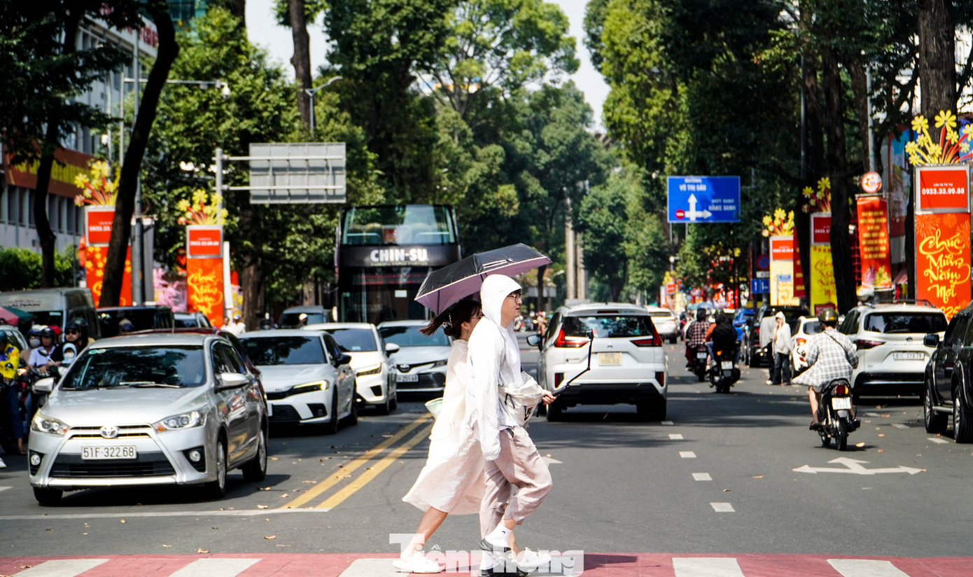 | Mùng 4 Tết, đường Lê Lợi (Quận 1) đông xe hơn. Nhiều người đi chúc tết, nhiều người tiếp tục mưu sinh với công việc thường nhật. |