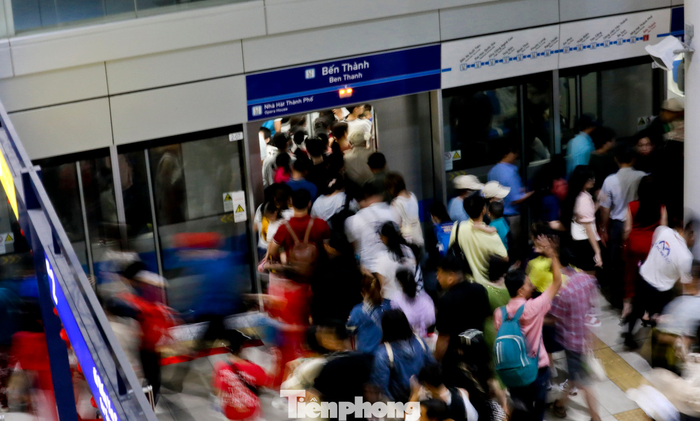 | Giống như những ngày trước đó, lượng hành khách đổ về ga metro số 1 (Bến Thành - Suối Tiên) tăng đột biến, gây ra tình trạng quá tải. |